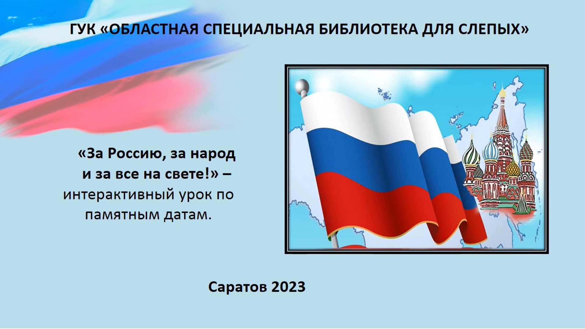 В Энгельсском филиале Областной специальной библиотеки для слепых с 4 по 12 декабря в рамках проекта «Отечеству на верность присягая» открыта книжно-иллюстративная выставка, посвященная Дню Героев Отечества «Гордимся славою героев».