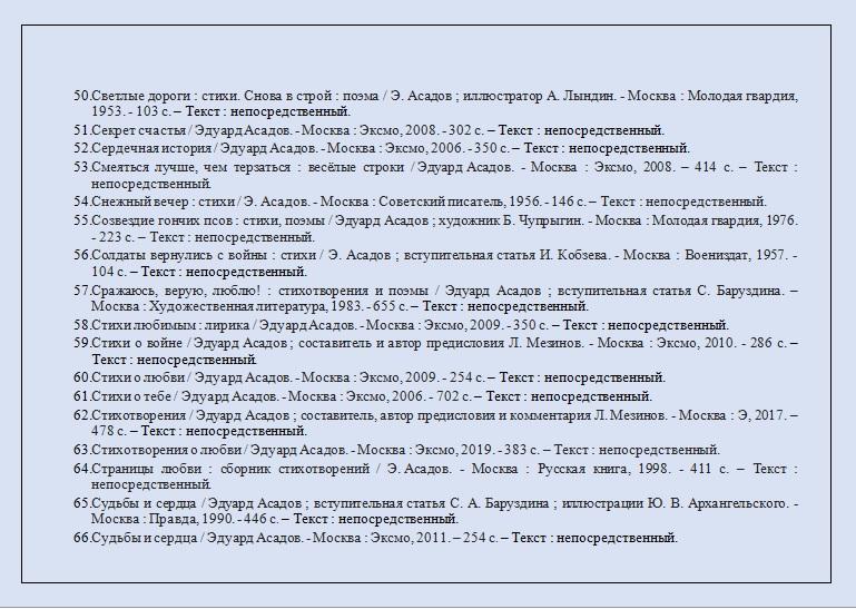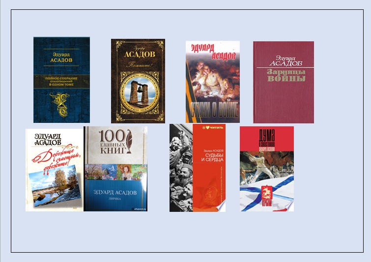 Сегодня наша выставка расскажет о знаменитом поэте Эдуарде Асадове (1923 – 2004). Эдуард Асадов - любимый поэт миллионов и миллионов читателей. Он человек редкой судьбы, редкого мужества и исключительной силы воли. Вся его жизнь - это борьба, а его оружие - поэзия.