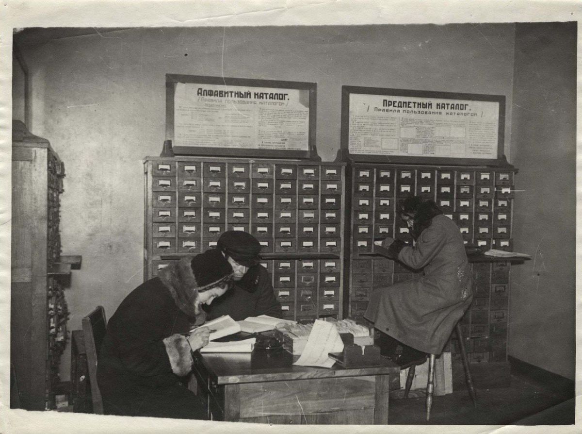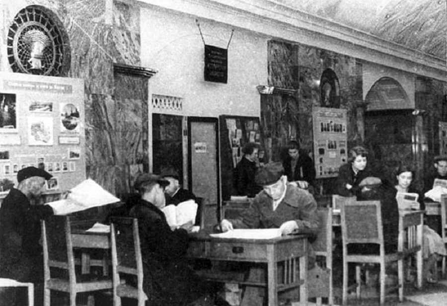 Многие сотрудники совмещали работу в библиотеке с какой-то еще – в колхозе или на предприятии. Отработав смену на производстве или уборке урожая, они спешили помогать коллегам раздавать книги, организовывать кружки, лекции, художественную самодеятельность. А ведь у большинства были еще домашнее хозяйство и семьи, которые нуждались во внимании и заботе. Сотрудники библиотек и изб-читален работали с раннего утра до позднего вечера. День начинался с прослушивания утренней сводки Советского информбюро, переписывания информации от руки и развешивания в общественных местах. Затем нужно было забрать прочитанные и выдать новые книги, организовать, а иногда и самим провести лекции, нарисовать стенгазеты, выпустить боевые листки, выступить перед рабочими на производстве, провести занятие со школьниками по внеклассному чтению - библиотекари без преувеличения жили на работе, отдавая все силы и время своему делу.