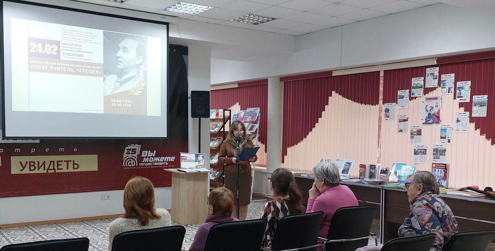 24 февраля ГУК «Областная специальная библиотека для слепых» приняла участие во Всероссийской сетевой литературной акции «Единый день незрячего поэта Михаила Ивановича Суворова - «Поэт, учитель, человек», приуроченной к 95-летию со дня его рождения.