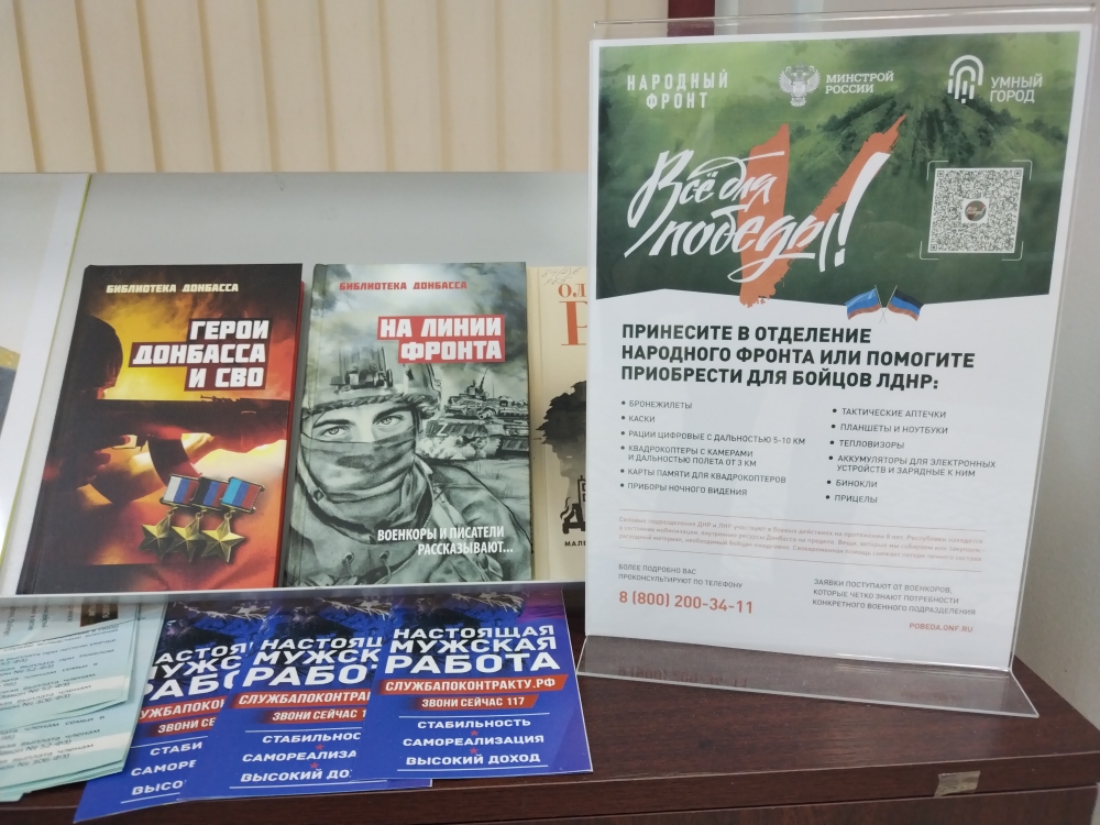 В рамках сетевого выставочного проекта “СВО: по зову совести и чести” в поддержку участников специальной военной операции в Областной специальной библиотеке для слепых и ее филиалах оформлены книжно-иллюстративные выставки о мужестве и героизме земляков, выполняющих с честью воинский долг в ходе СВО. Отдельные разделы выставок посвящены участникам специальной военной операции, погибшим при выполнении боевых задач.