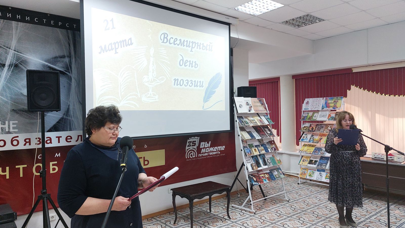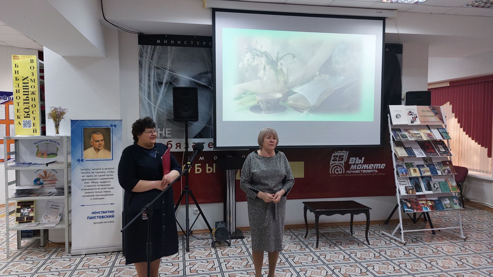 Директор ГУК «Областная специальная библиотека для слепых» Ольга Новикова поприветствовали участников мероприятия, пожелала творческого общения и незабываемых эмоций от встречи с поэзией.