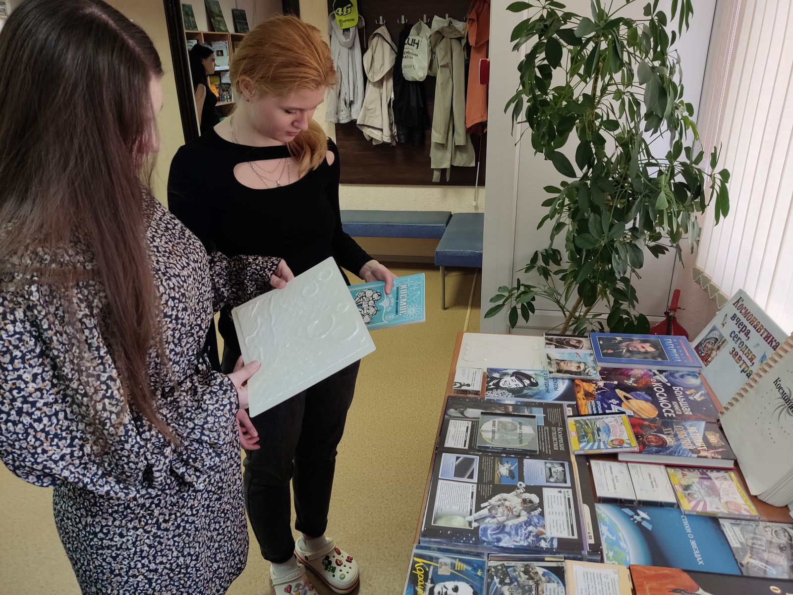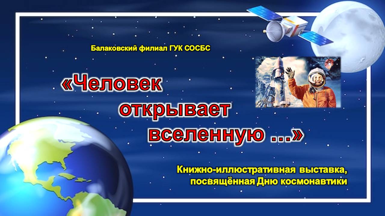 В Балаковском филиале Областной специальной библиотеки для слепых работает книжно-иллюстративная выставка, посвящённая Дню космонавтики. Выставка «Человек открывает вселенную…» знакомит с историей возникновения праздника, рассказывает о развитии космонавтики, о первом полёте человека в космическое пространство, о космонавтах и тех, кто трудится в космической отрасли; представляет художественную и научно-популярную литературу по теме разных форматов и на разных носителях, издания библиотеки.