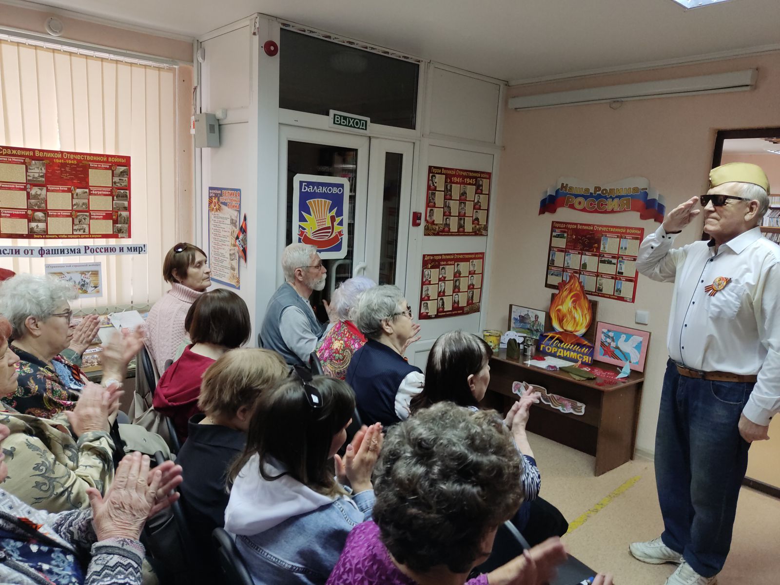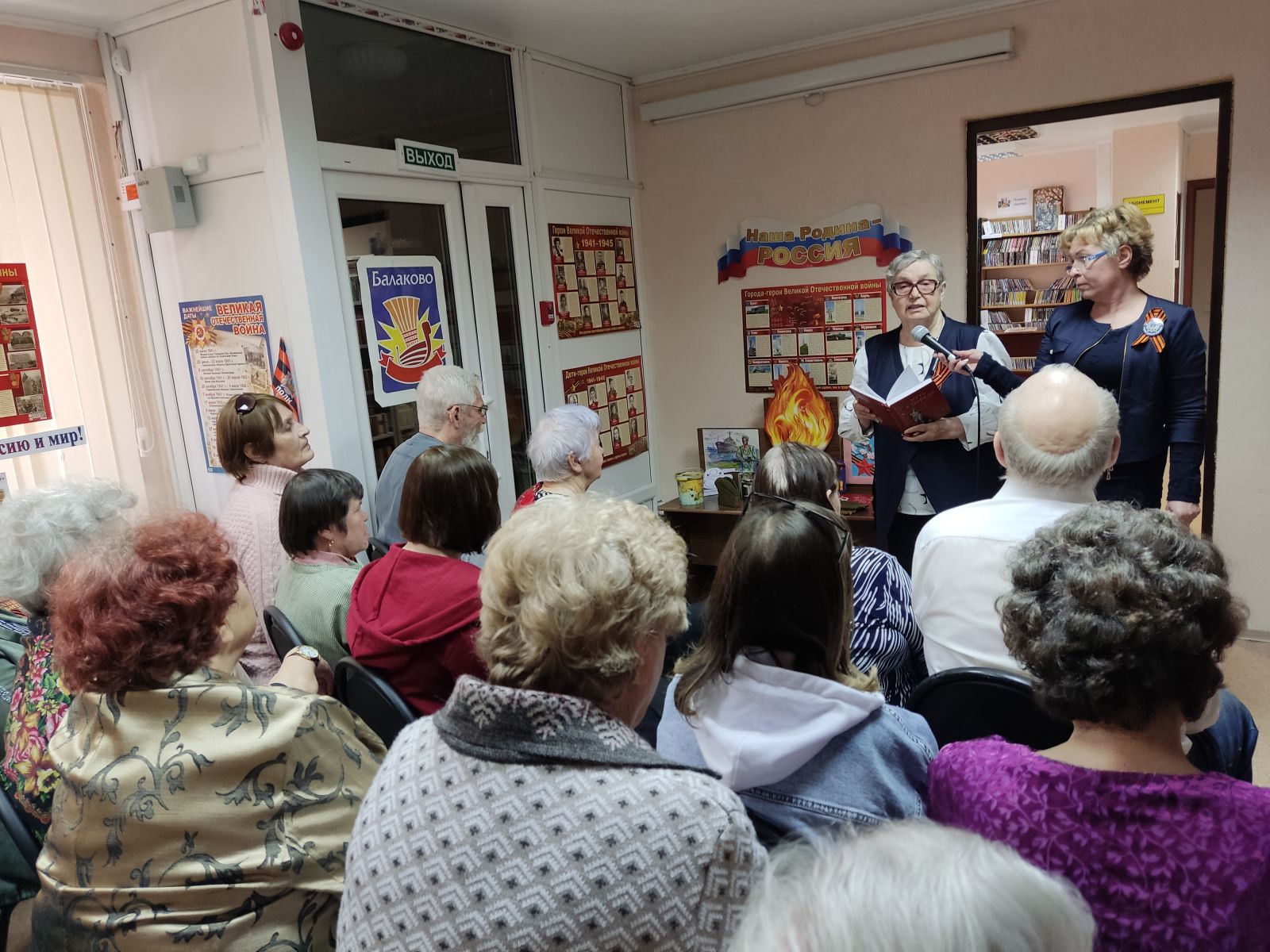 Балаковский филиал Областной специальной библиотеки для слепых посвятил музыкально-поэтический вечер подвигу и силе духа советского народа в Великой Отечественной войне, героизму воевавших на фронте и в тылу за мирное небо над головой. Мероприятие «Помнит сердце, не забудет никогда!» рассказало о дне воинской славы России, установленном в честь Дня Победы советского народа в Великой Отечественной войне 1941-1945 годов; прозвучали торжественные и проникновенные стихи известных поэтов и собственного сочинения читателей библиотеки, трогательные и задушевные песни военных лет, песни о Родине, о мире и о Великой победе. Тёплые лирические мелодии и поэтические строки были посвящены подвигу тех, кто отстоял честь и свободу нашей Родины.