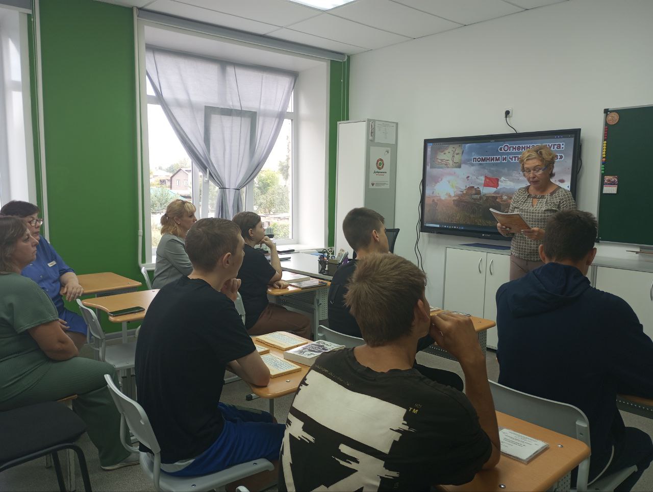 Балаковский филиал ГУК «Областная специальная библиотека для слепых» провёл для воспитанников ГБОУ СО «Школа-интернат для обучающихся по адаптированным образовательным программам г. Балаково» урок мужества «Огненная дуга: помним и чтим героев», посвящённый Дню разгрома советскими войсками немецких войск в Курской битве. Сотрудники библиотеки рассказали о ходе и значении одного из ключевых сражений Второй мировой и Великой Отечественной войн - Курской битвы, решающей на Восточном фронте. Битва на Курской дуге была показана в том числе глазами поэтов и писателей-фронтовиков. Школьники читали стихи, посвящённые Великой Победе; посмотрели отрывок «Огненная Дуга» из исторической киноэпопеи Юрия Озерова «Освобождение»; совершили виртуальную экскурсию по историко-художественному музею-диораме «Курская дуга. Белгородское направление».