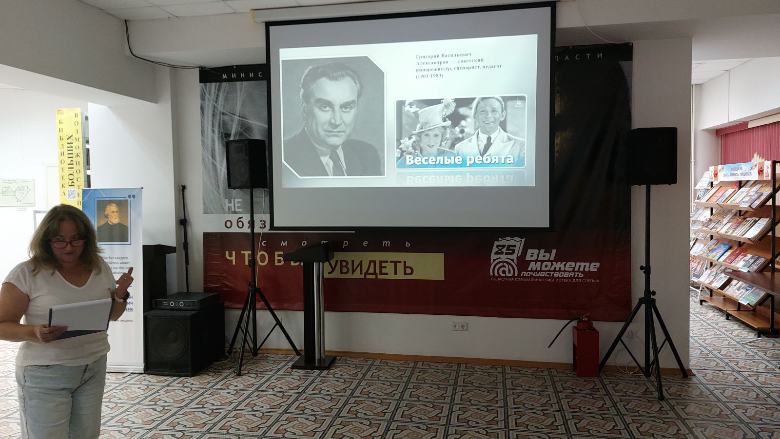 В ГУК «Областная специальная библиотека для слепых» состоялась арт-встреча «Творцы российского кино». Ведущая мероприятия Светлана Южакова рассказала читателям об истории отечественного кинематографа — от первых фильмов конца XIX века до ярких имён, оставивших неизгладимый след в культуре и искусстве нашей страны. Участники арт-встречи активно обменивались мнениями о любимых фильмах, обсуждение их значимости и влияния на культуру.