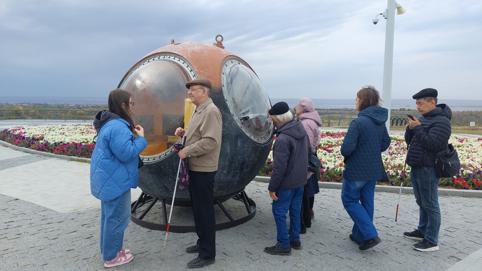 Участники экскурсии с различными нарушениями зрения побывали на двух локациях: место приземления Юрия Гагарина и место приземления спускаемого аппарата, в народе называемого «капсулой».