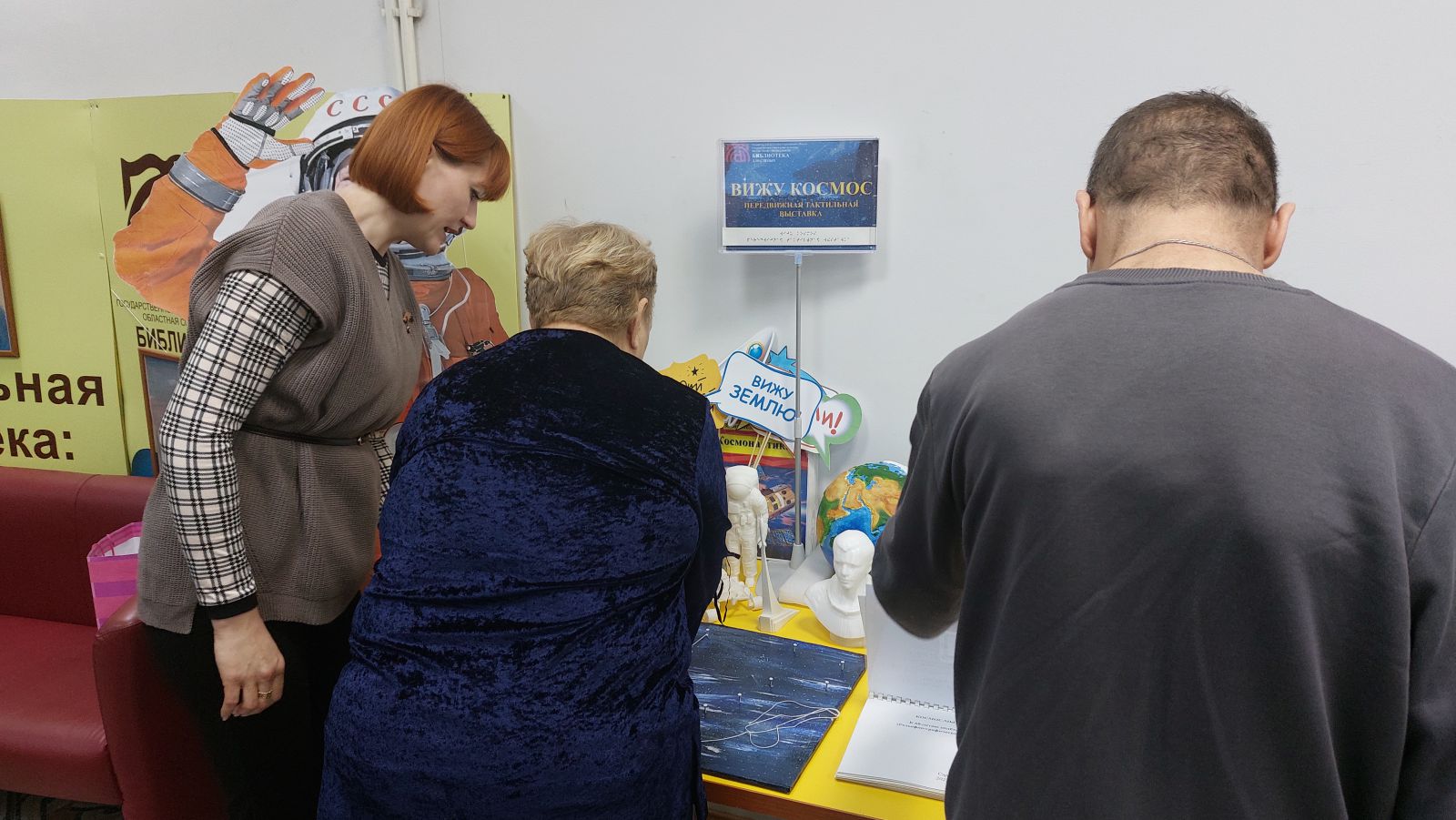 В Международный день белой трости, который отмечается 15 октября, у читателей и гостей Областной специальной библиотеки для слепых была уникальная возможность прикоснуться к бескрайним просторам Вселенной. Тактильная выставка «Вижу космос», созданная при поддержке Фонда президентских грантов, включает в себя 3D макеты космических объектов, издания об освоении космоса, космонавтах в специальных форматах.