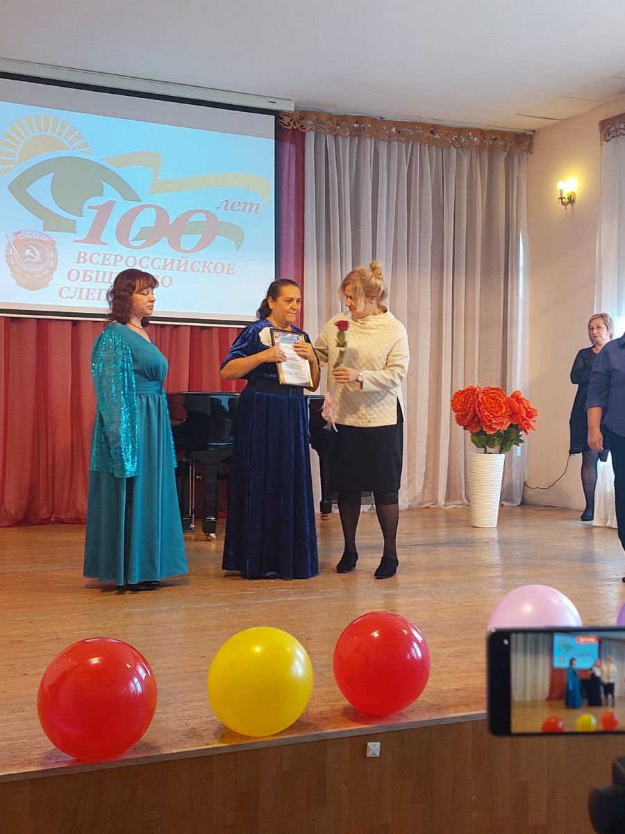 Ведущая мероприятия Назарова Наталья Викторовна кратко рассказала историю создания Всероссийского общества слепых, а также о том, какой вклад внесли незрячие в Победу Советского Союза над фашистской Германией.