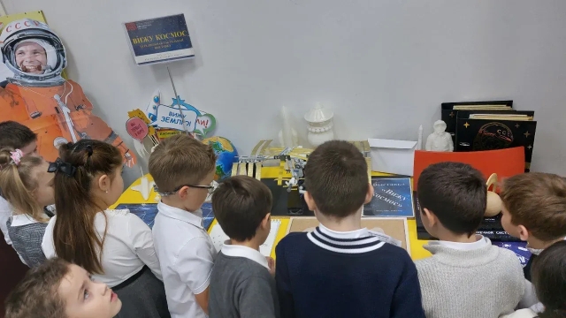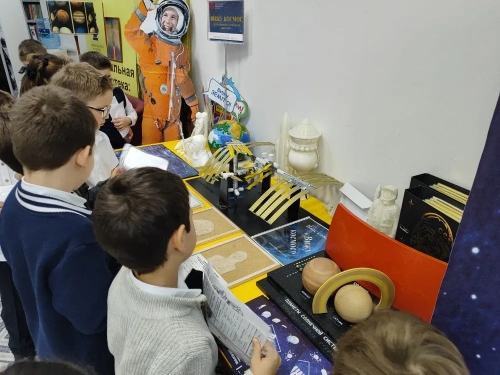 Учащиеся 1 «А» и 1 «Б» классов средней школы № 2 имени В.П. Тихонова стали гостями ГУК «Областная специальная библиотека для слепых». Тактильная выставка «Вижу космос» – настоящий портал в мир звезд и планет, где каждый может прикоснуться к тайнам Вселенной. Юные читатели с восторгом рассматривали объемные 3D-модели Международной космической станции (МКС), планет Солнечной системы, изучали карту Парка покорителей космоса имени Ю. Гагарина. Особенно ребят впечатлил бюст Юрия Гагарина – первого человека, побывавшего в космосе. Сотрудник библиотеки рассказал о подвиге Юрия Алексеевича и его значимости для истории космонавтики. Каждый экспонат тактильной выставки вызывал у детей восторг и желание узнать больше о загадочном мире космоса.
