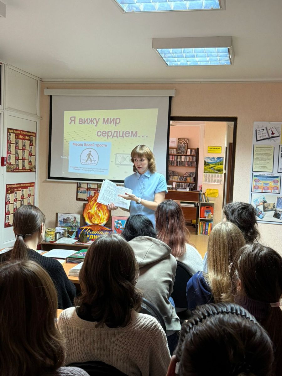 В ходе беседы о живущих рядом людях, которым, возможно, нужна наша помощь, студенты рассказали о своём опыте общения с инвалидами, в том числе по зрению и согласились с тем, что очень многое в жизни человека зависит от его желания и намерения распорядиться своей жизнью. В заключение экскурсии гости получили памятки об основных правилах общения и взаимодействия с инвалидами по зрению, изданные Областной библиотекой для слепых.