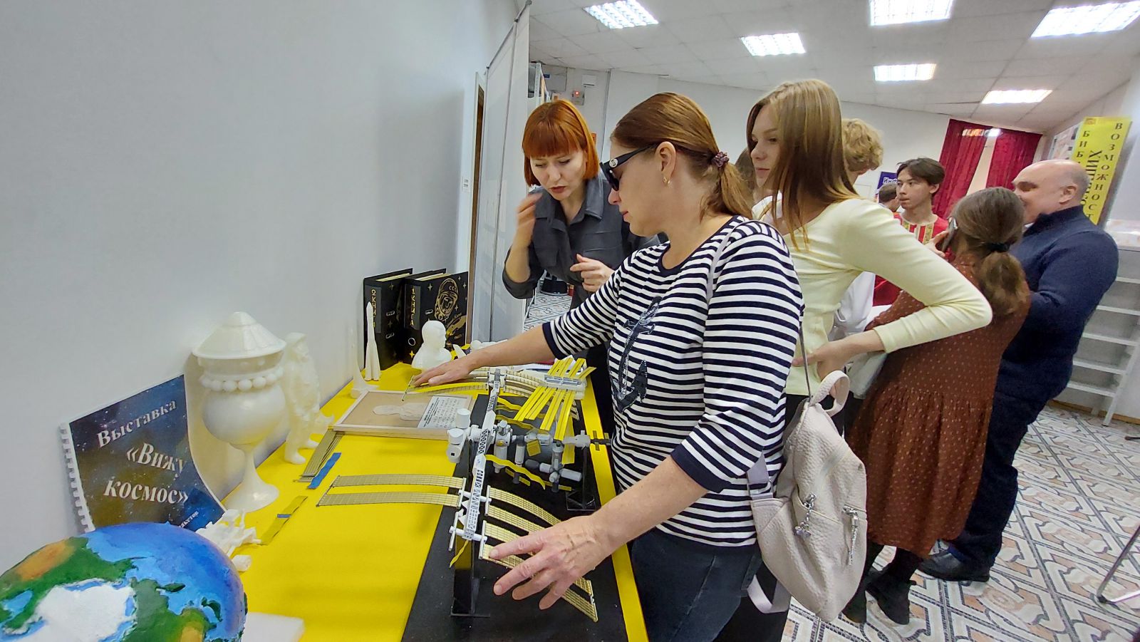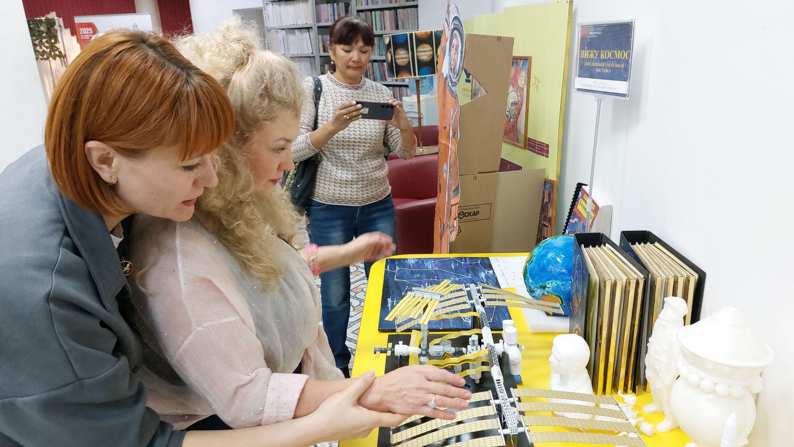 «Вижу космос» – тактильная выставка, где каждый может открыть для себя космос, независимо от физических возможностей. На выставке представлены 3D-модели космических объектов, литература о космосе в специальных форматах, тактильные модели ракет, скафандров и бюсты космонавтов.