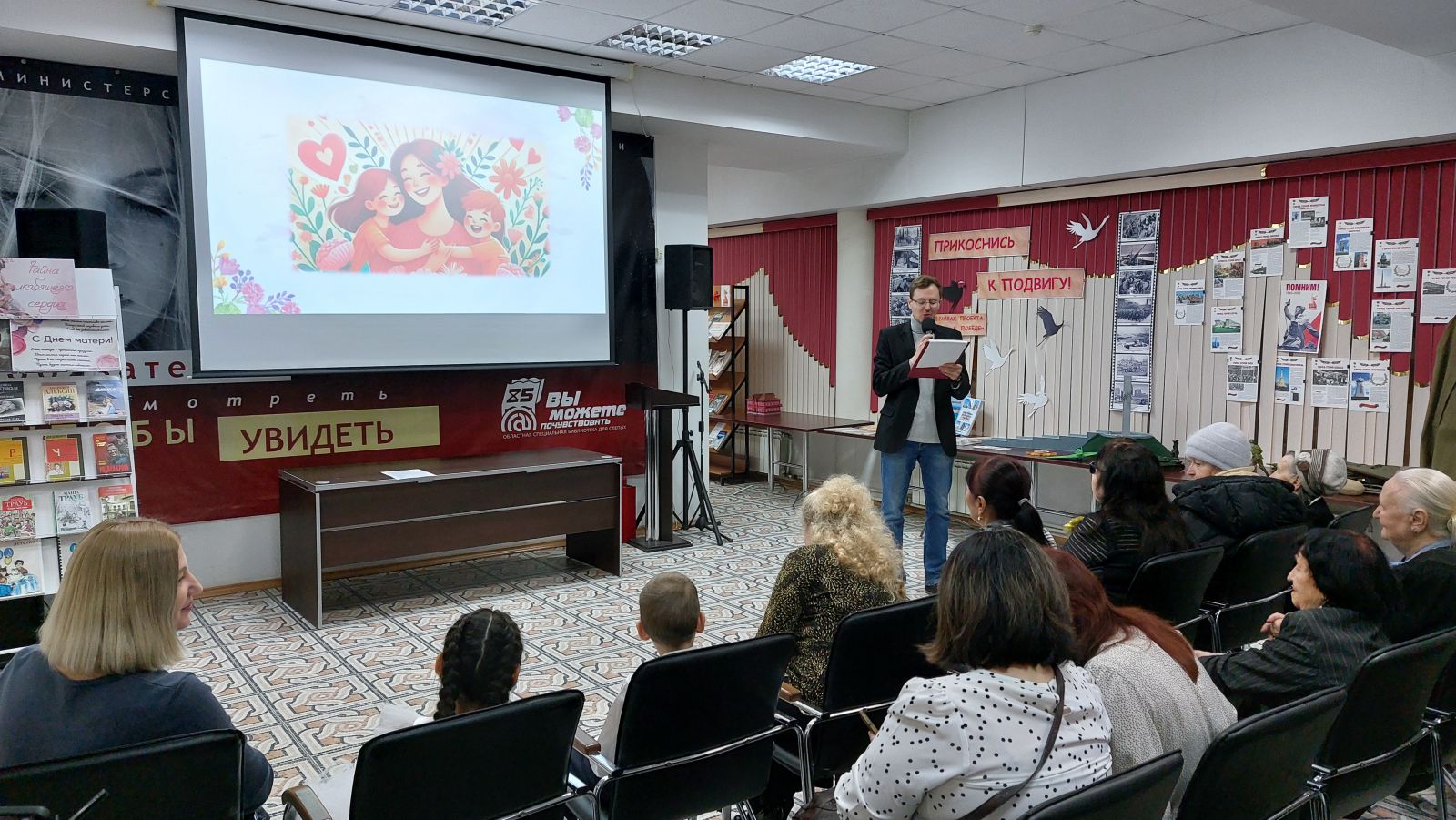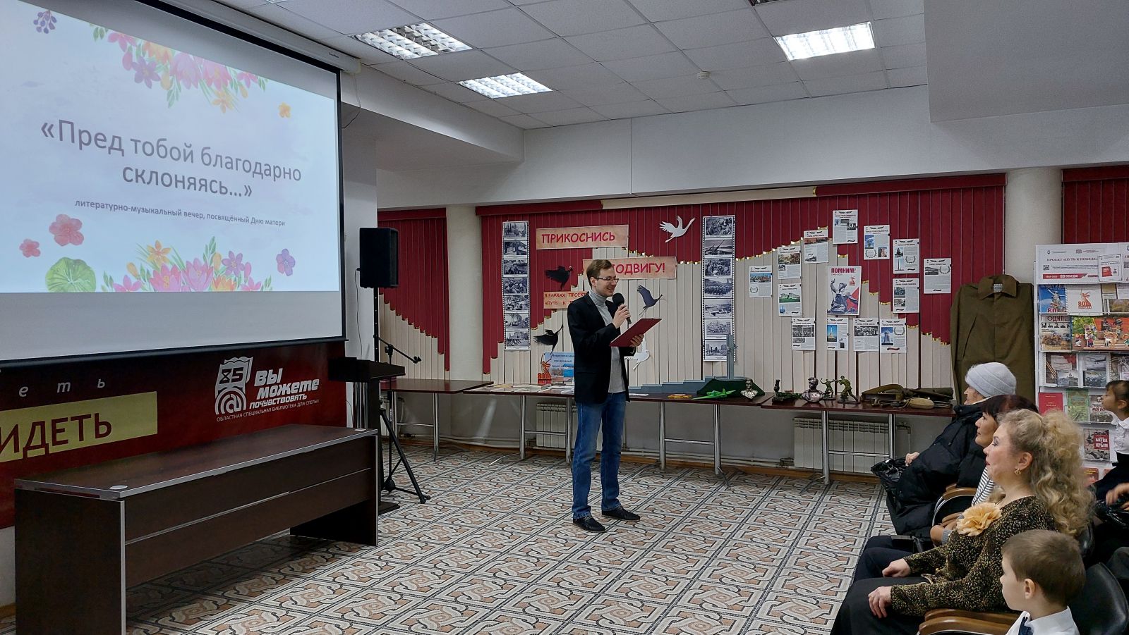 Ведущий вечера Артем Бондарев рассказал историю замечательного праздника, рассказав о его истоках и традициях. Участники мероприятия узнали, где и когда впервые отметили День матери, а также о том, как этот праздник появился и укоренился в России.