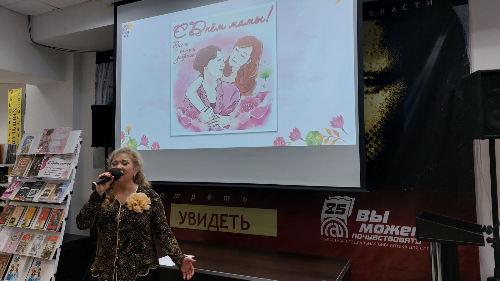 28 ноября в ГУК «Областная специальная библиотека для слепых» прошел трогательный и душевный литературно-музыкальный вечер «Пред тобою благодарно склоняясь...», посвященный самому нежному и важному празднику – Дню матери. Это событие стало прекрасным поводом для всех присутствующих, как постоянных читателей, так и гостей библиотеки, выразить свою глубочайшую признательность и безграничную любовь к своим мамам.
