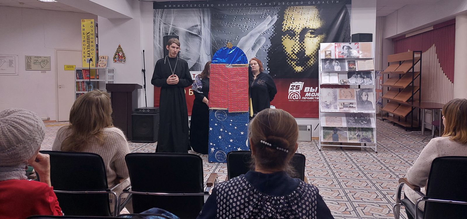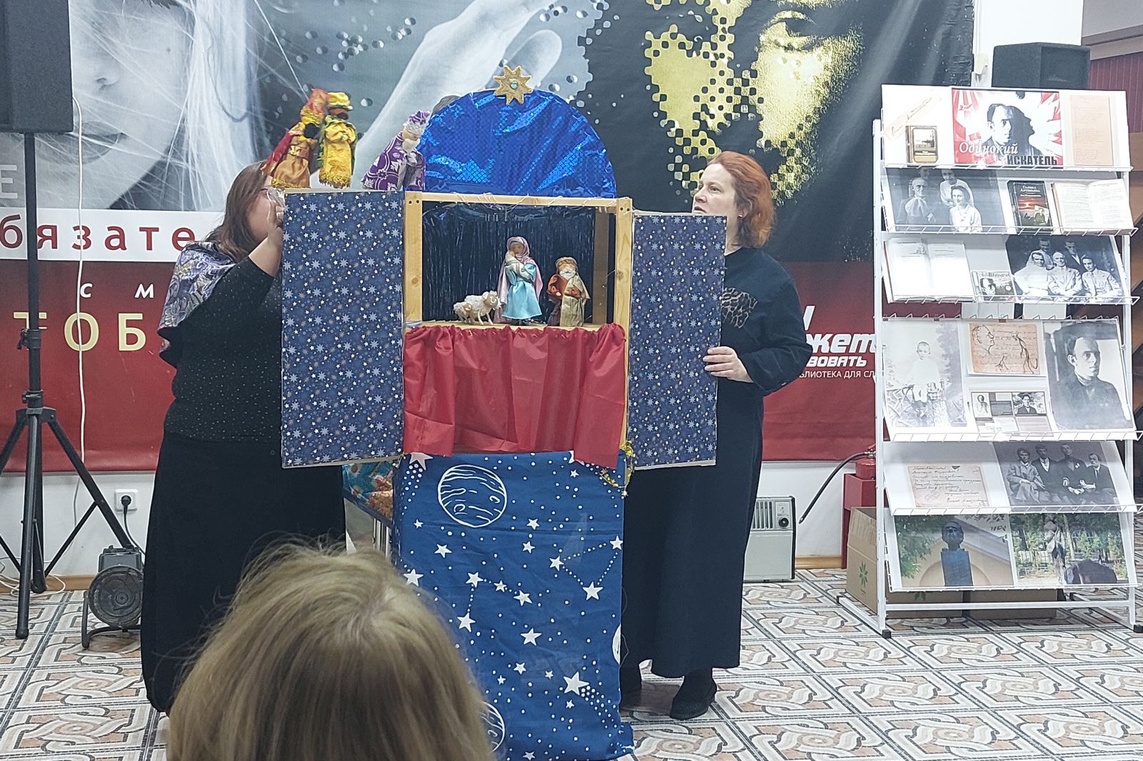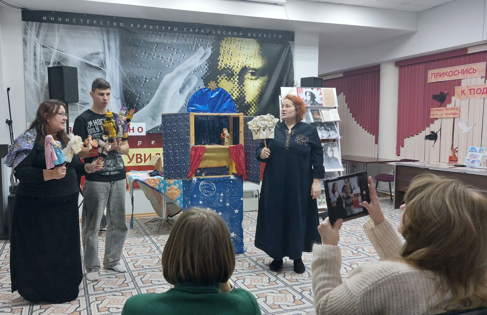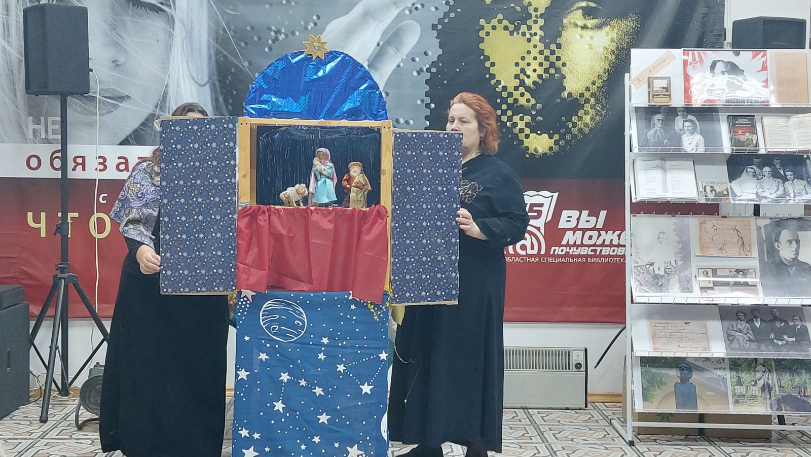 13 января в Областной специальной библиотеке для слепых прошло яркое театрализованное действо «Вертеп», посвященное традициям празднования Рождества. Представление было подготовлено творческой студией «Красно солнышко» при храме святого равноапостольного князя Владимира, участники которой увлечены изучением традиционной народной и религиозной культуры.