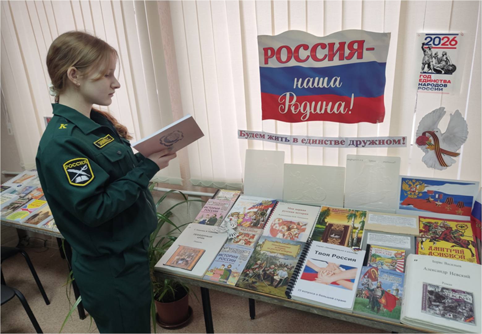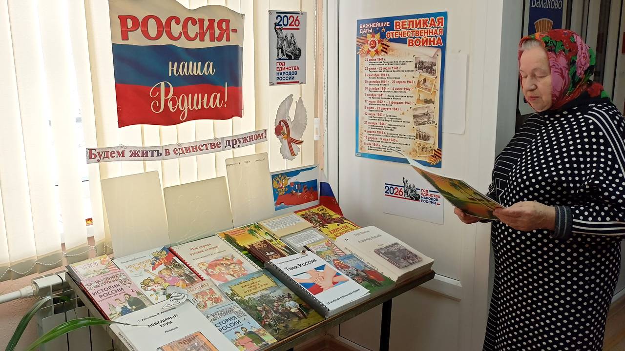 В Балаковском филиале Областной специальной библиотеки для слепых работает книжно-иллюстративная выставка, посвящённая Году единства народов России. Выставка «Будем жить в единстве дружном!» рассказывает о достижении национального единства, мира и согласия между всеми народами России; представляет литературно-художественную и научно-популярную литературу разных форматов и на разных носителях; иллюстрации, аудиозаписи и видеоматериалы, посвящённые укреплению дружбы и взаимопониманию между народами, проживающими на территории многонациональной страны.