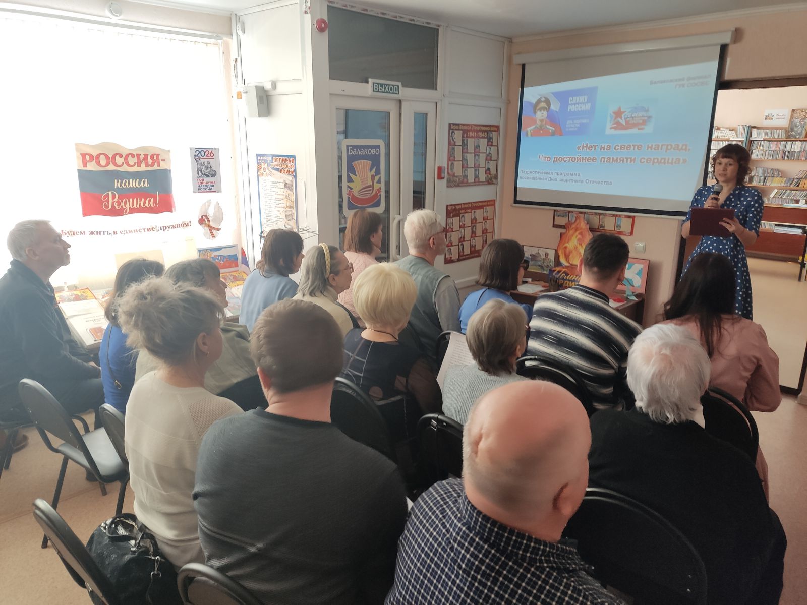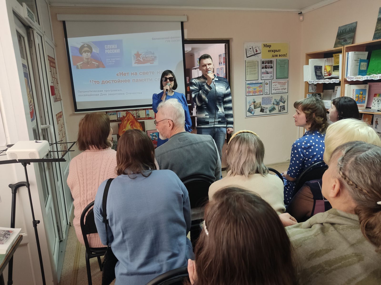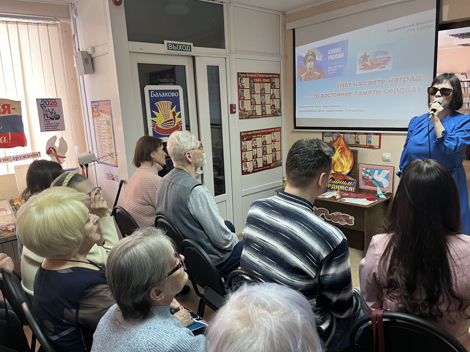 Балаковский филиал Областной специальной библиотеки для слепых провёл патриотическую программу, посвящённую Дню защитника Отечества. Мероприятие рассказало о мужестве и славе защитников Отечества, об истории создания армии нашей страны, об основных вехах её развития, о патриотизме русской армии, о знаменитых воинах, прославивших Россию с древних времён и до нашего времени; представило литературные, музыкальные и поэтические (в том числе собственного сочинения) произведения о защитниках Отечества, о людях, готовых бороться за свободу и независимость своей страны, за благополучие и процветание её граждан, за справедливость и историческую память, а также о мире и любви.