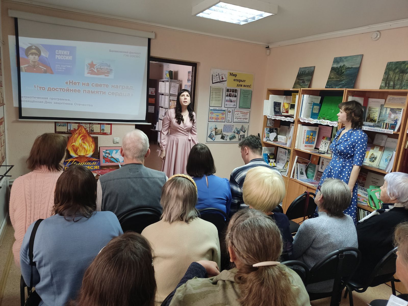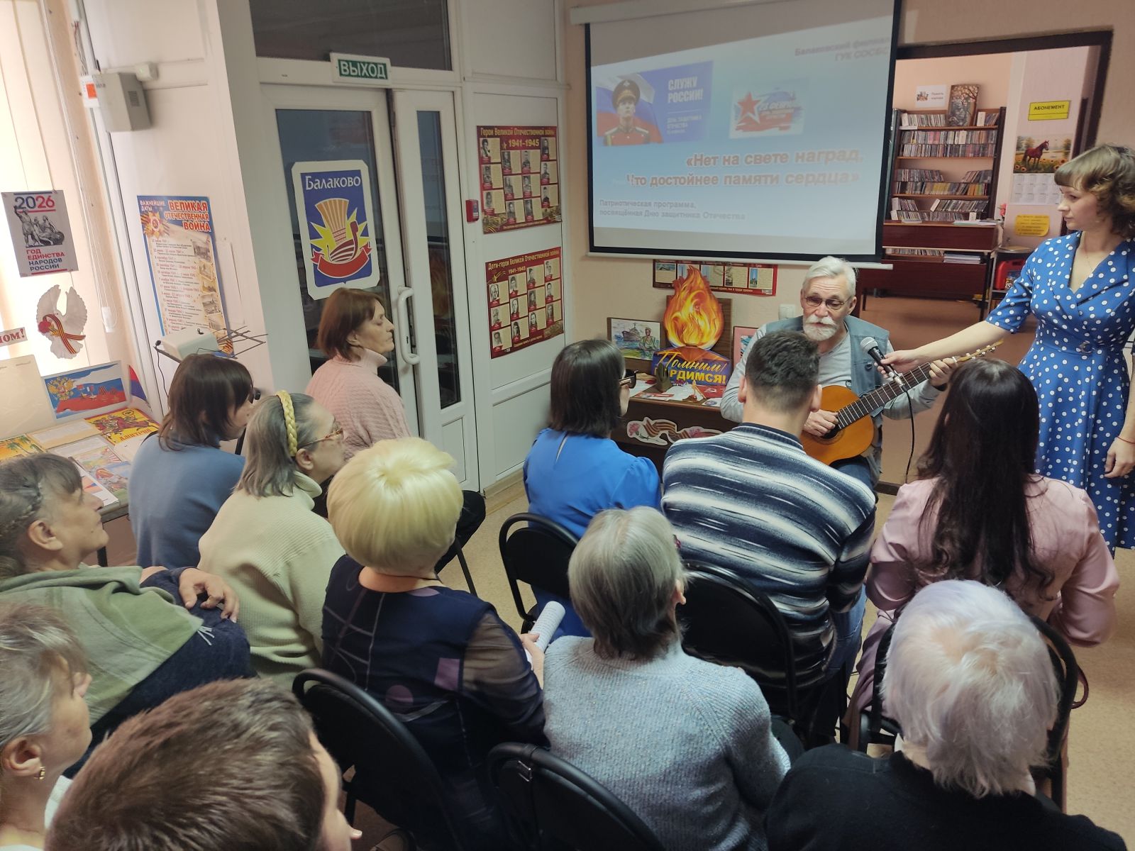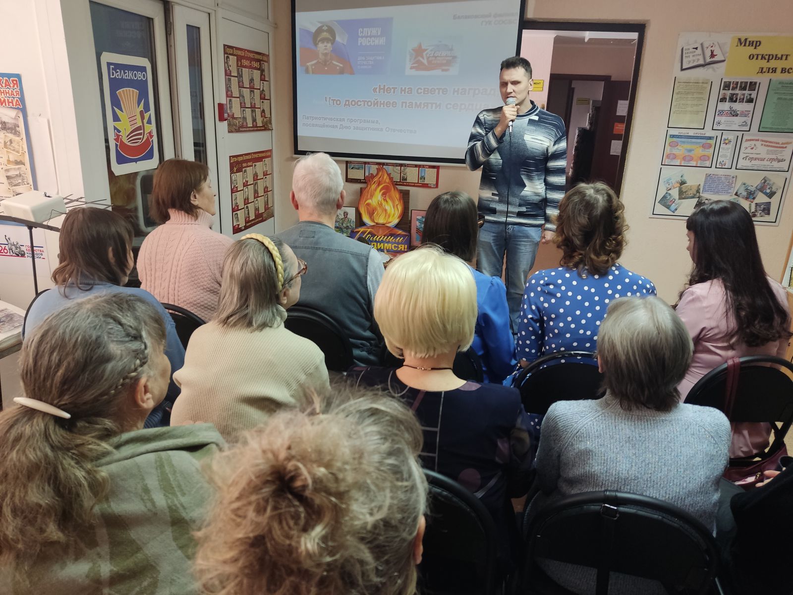 Балаковский филиал Областной специальной библиотеки для слепых провёл патриотическую программу, посвящённую Дню защитника Отечества. Мероприятие рассказало о мужестве и славе защитников Отечества, об истории создания армии нашей страны, об основных вехах её развития, о патриотизме русской армии, о знаменитых воинах, прославивших Россию с древних времён и до нашего времени; представило литературные, музыкальные и поэтические (в том числе собственного сочинения) произведения о защитниках Отечества, о людях, готовых бороться за свободу и независимость своей страны, за благополучие и процветание её граждан, за справедливость и историческую память, а также о мире и любви.