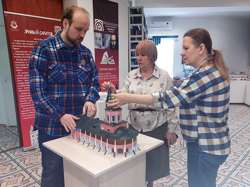 Во время экскурсии по библиотеке столичные гости познакомились с нашими экспозициями. Особое впечатление на них произвела выставка «Зримый Саратов», представляющая архитектурное наследие города в доступном для незрячих формате. В ходе живого общения коллеги обнаружили множество общих профессиональных интересов, что в будущем может перерасти в новый яркий совместный проект между Саратовом и Москвой.