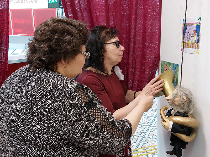 Праздничный день начался в библиотеке с открытия обновлённой экспозиции выставки «Прикоснись к театру» . Саратовский театр кукол предоставил для читателей своих «артистов» - кукол, которых можно «увидеть» руками. Для гостей библиотеки это редкая возможность познакомиться с театральной куклой максимально близко: каждую из них можно было детально изучить тактильно. Рядом с экспонатами были размещены описания, выполненные рельефно-точечным шрифтом Брайля, что позволило всем желающим самостоятельно погрузиться в историю и характер каждого персонажа.