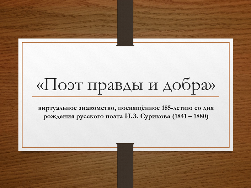 Предлагаем Вашему вниманию виртуальное знакомство с жизнью и творчество русского поэта Ивана Захаровича Сурикова.