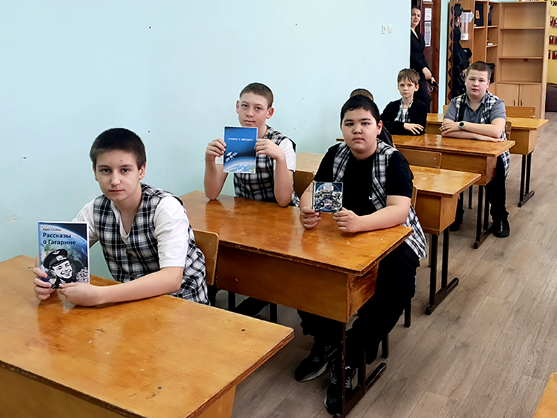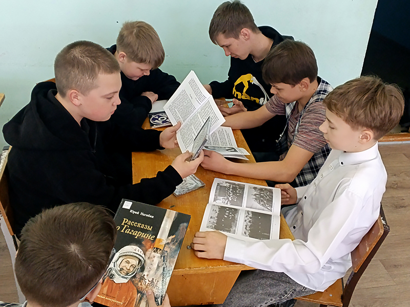 Потом школьники посмотрели необычную книжную выставку «Загадочный мир космоса», посвящённую 65-летию первого полёта человека в космос, и с азартом поучаствовали в космической викторине. В общем, время провели увлекательно и с пользой: и повеселились, и много нового узнали.