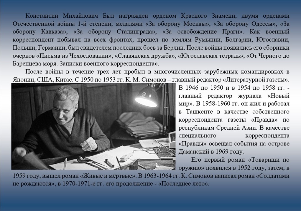 Литературные юбилеи 2020 года. Константин Михайлович Симонов