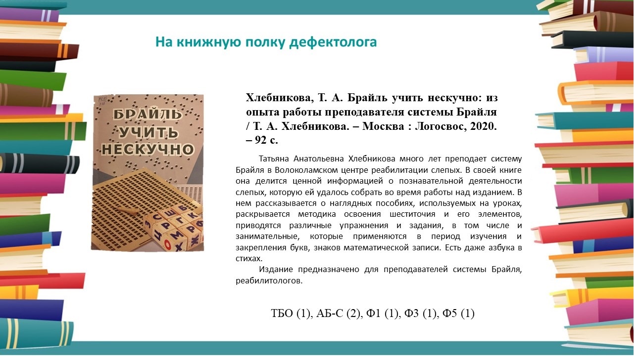 На книжную полку тифлопедагога