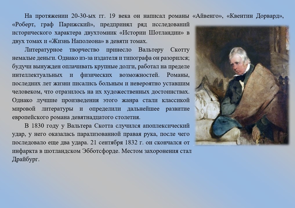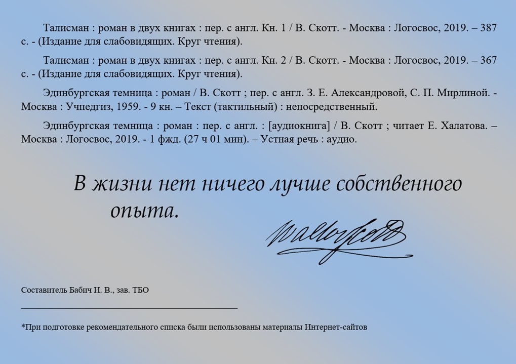 Литературные юбилеи 2021 года. Вальтер Скотт