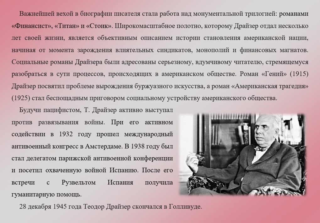 Литературные юбилеи 2021 года. Теодор Драйзер