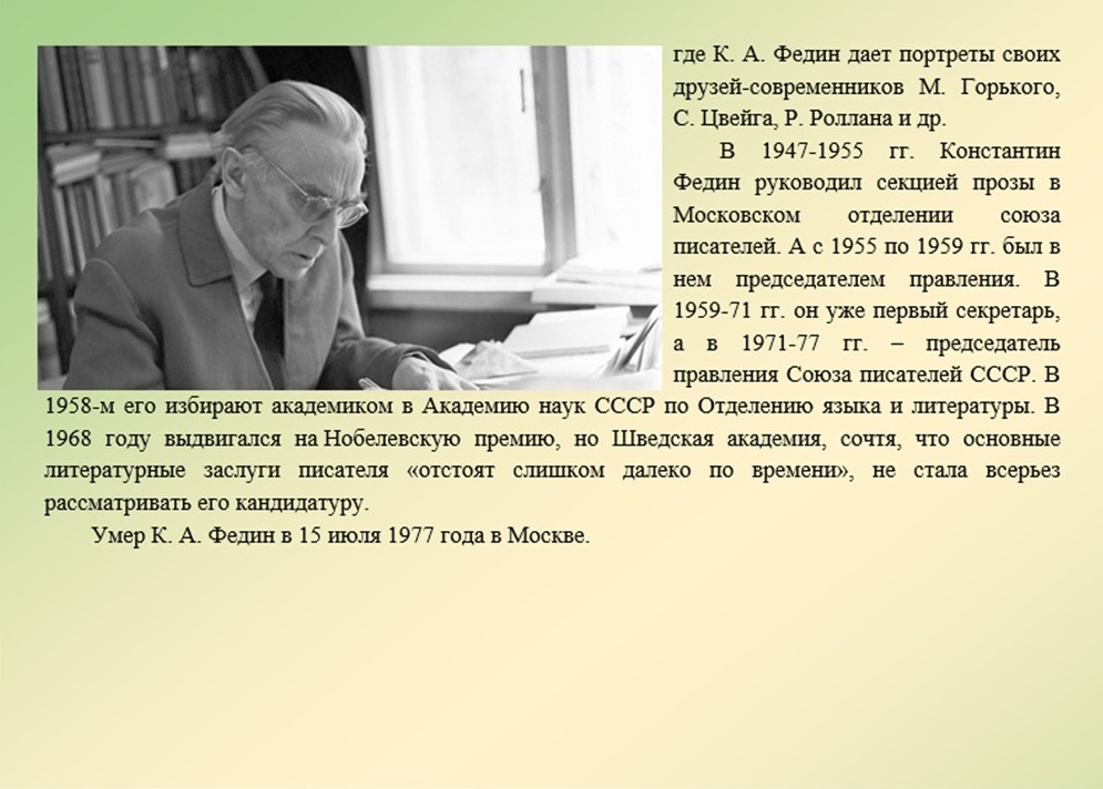 Литературные юбилеи 2022 года. Константин Александрович Федин