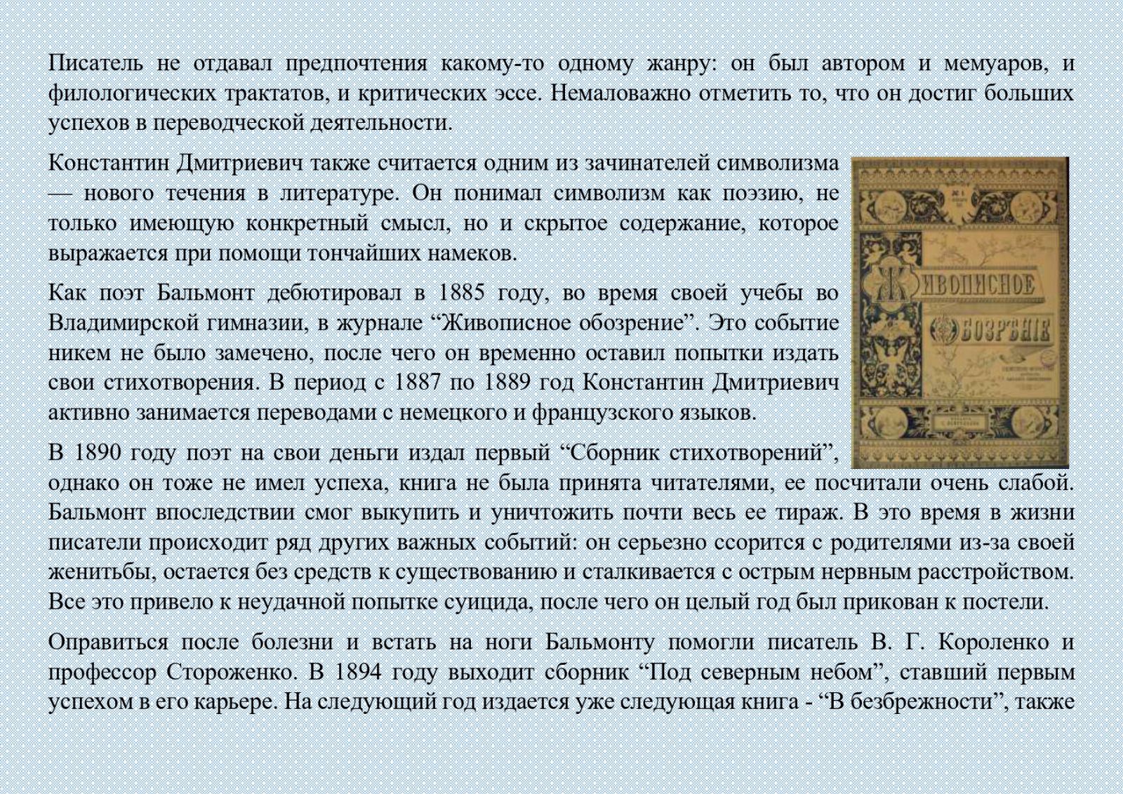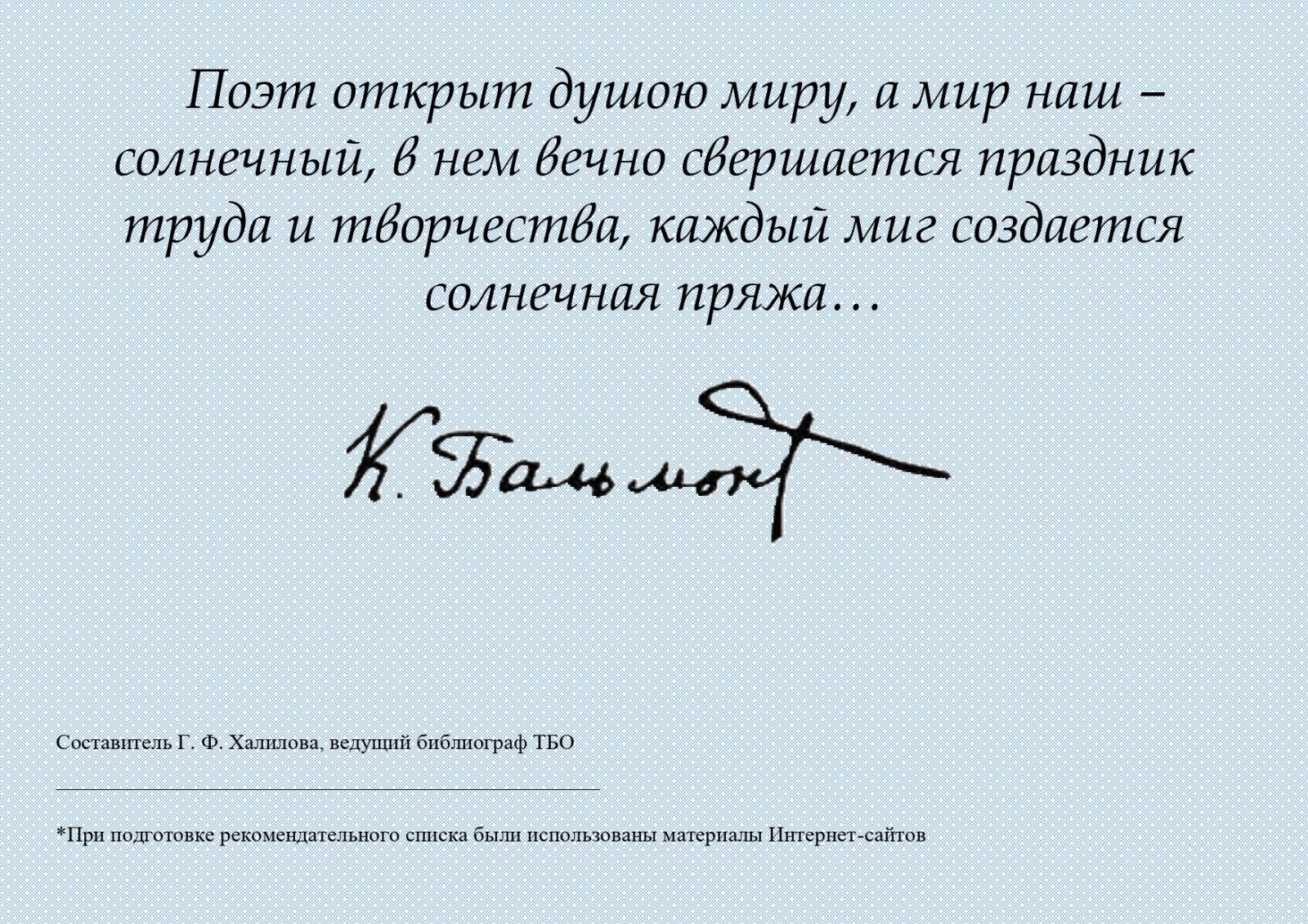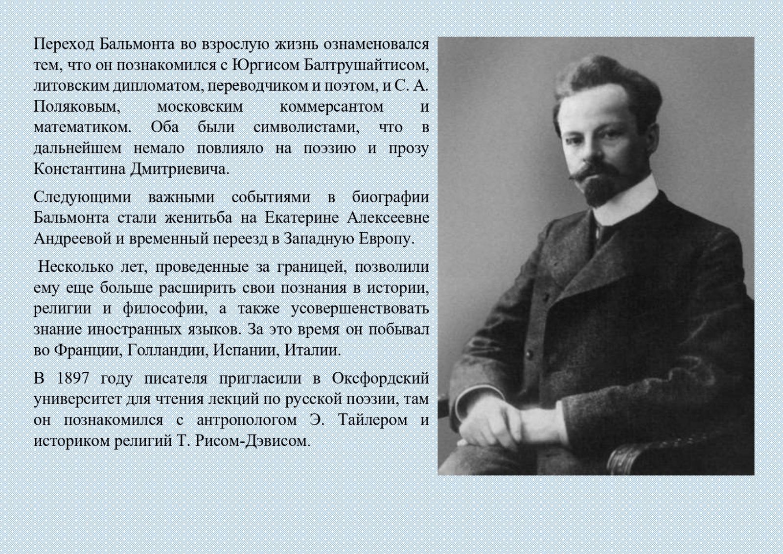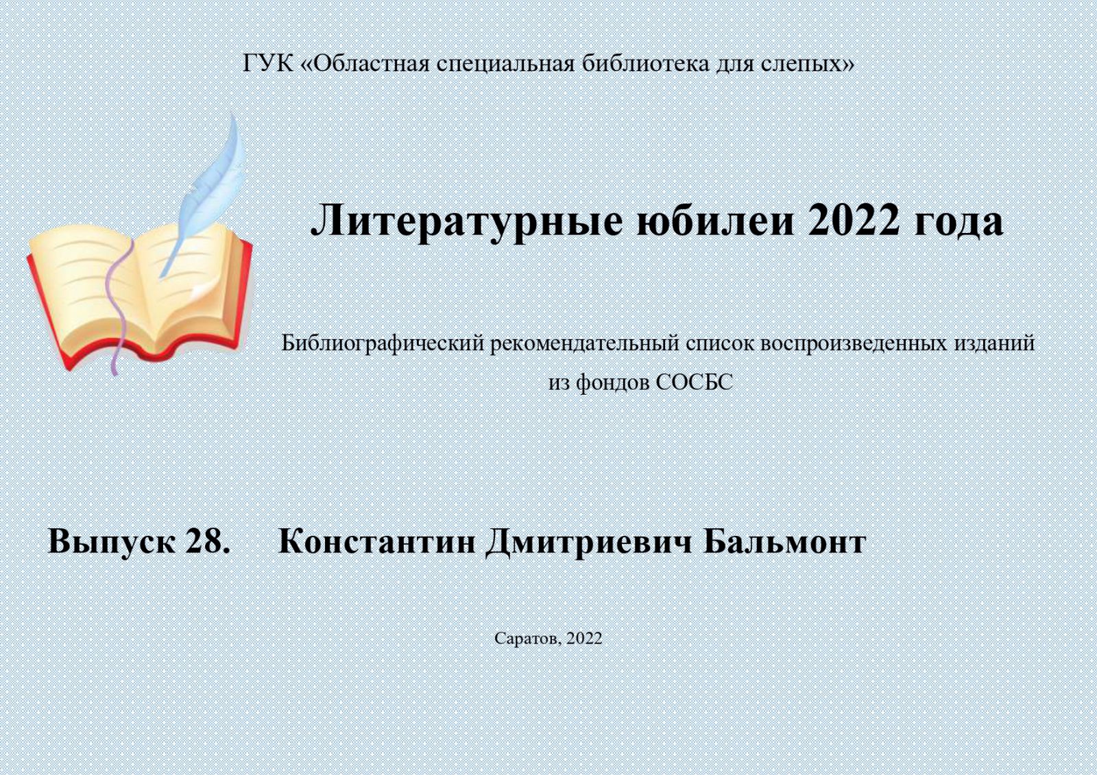 Литературные юбилеи 2022 года. Константин Дмитриевич Бальмонт