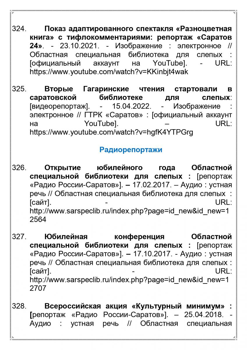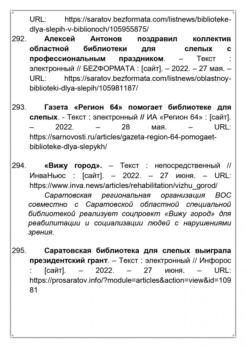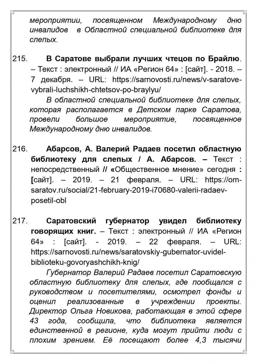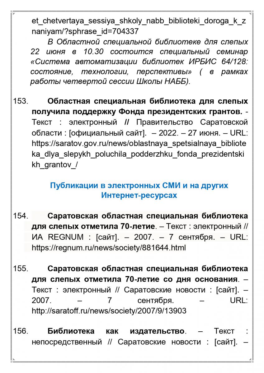 Саратовская областная специальная библиотека для слепых в СМИ (1937-2022)