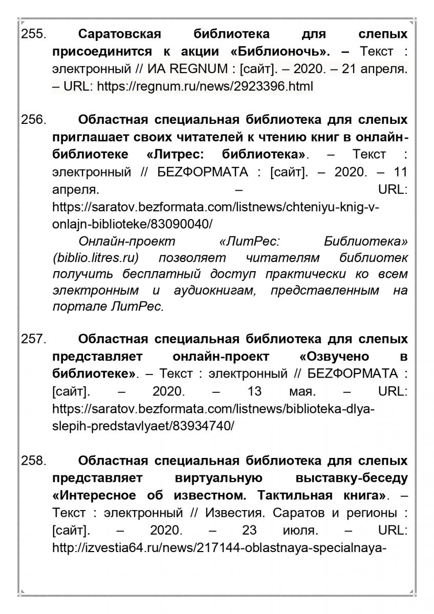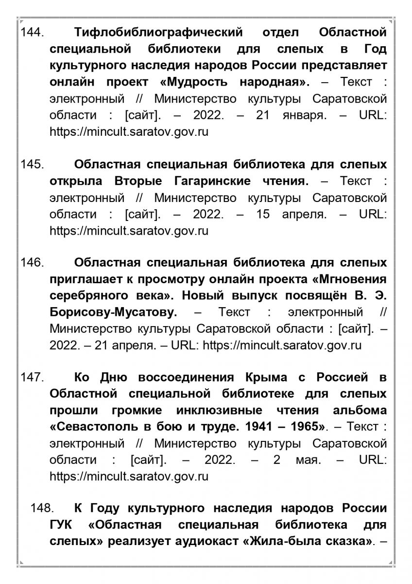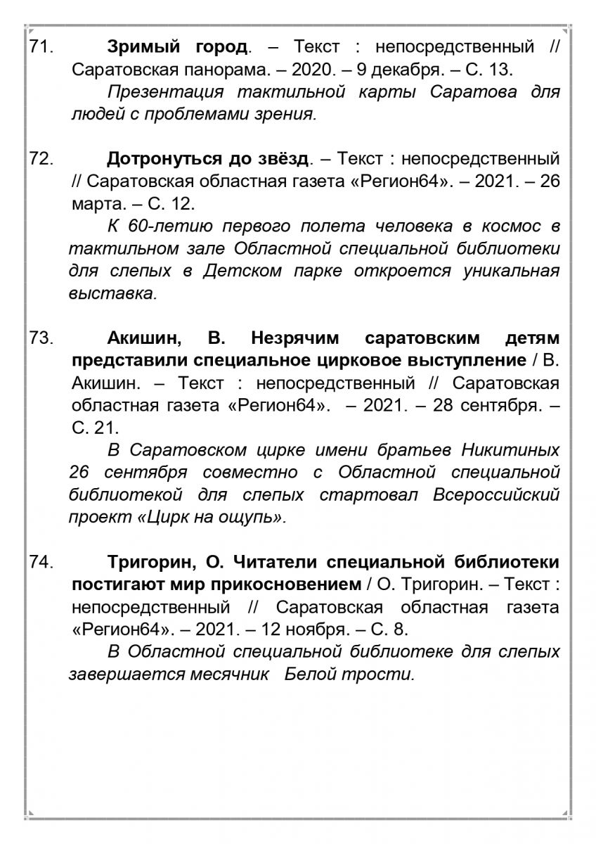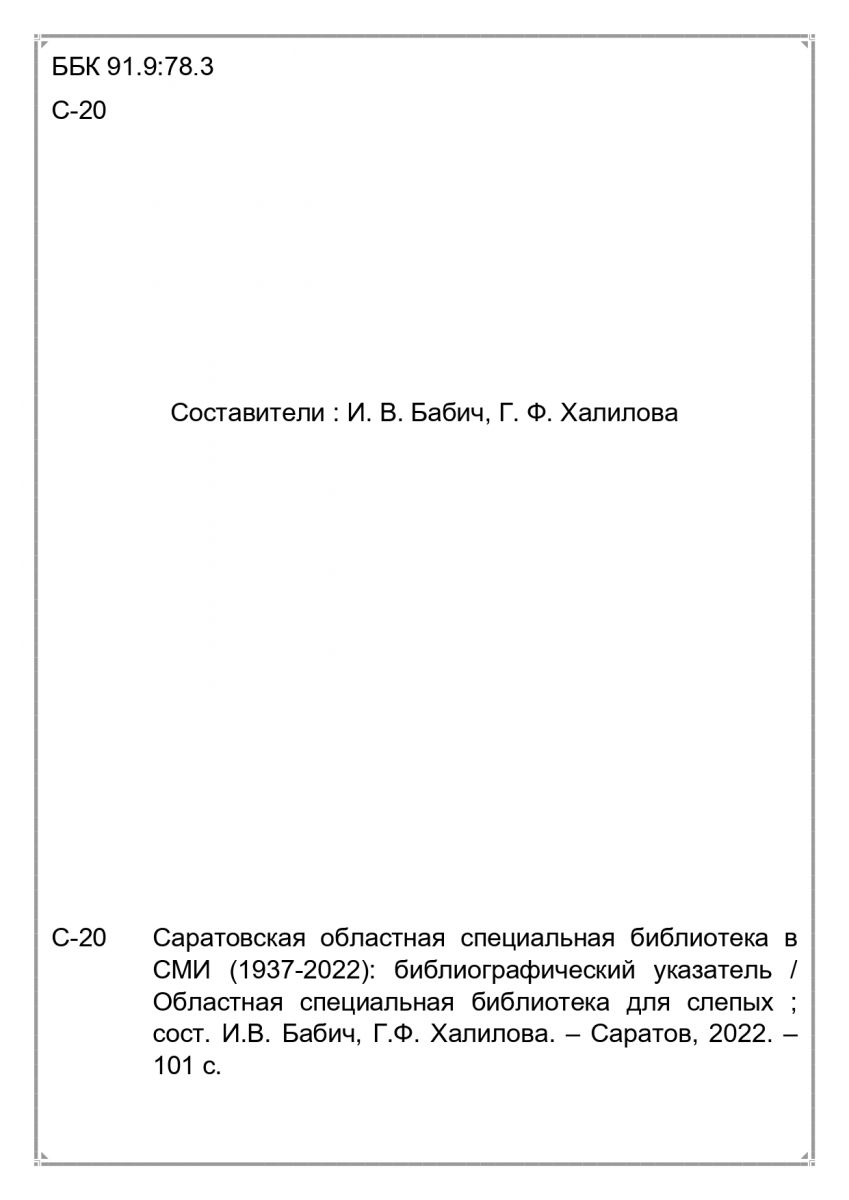 Саратовская областная специальная библиотека для слепых в СМИ (1937-2022)
