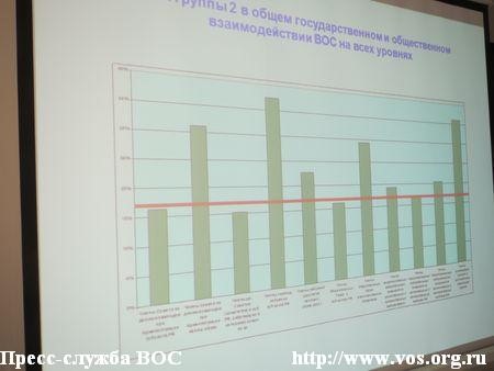 С интересом были восприняты подготовленные работниками АУ ВОС презентации, слайд-шоу, схемы и графики, которые наглядно отразили работу ВОС, руководителей региональных организаций и ООО ВОС по повышению эффективности взаимодействия с органами власти и органами местного самоуправления, СМИ в целях поддержки предприятий и учреждений.