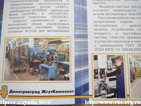 При посещении предприятия ООО «Димитровград ЖгутКомплект» слушатели семинара смогли непосредственно познакомиться с вопросами практической организации взаимодействия с органами власти и органами местного самоуправления, создания позитивного имиджа предприятий ВОС, информационно-разъяснительной работы слушателям, о которых рассказал генеральный директор предприятия М. П. Хальзов.