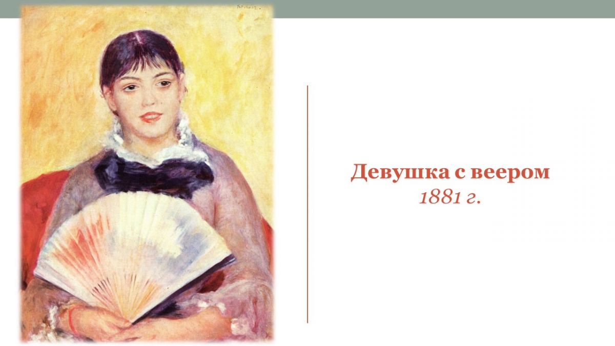 Ренуар – один из основных представителей искусства импрессионизма. Художник известен в первую очередь как мастер светского портрета, не лишённого сентиментальности; он первым из импрессионистов сыскал успех у публики.