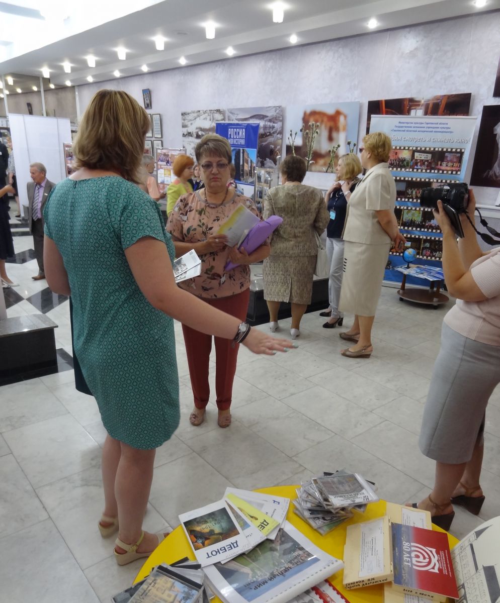 Сотрудники библиотеки представили выставку «Родной край в доступных форматах» - литература на специальных носителях для людей с ограничениями по зрению, выпущенная Сектором по выпуску изданий для слепых и слабовидящих Областной специальной библиотеки для слепых. Любой желающий мог ознакомиться с заинтересовавшей его книгой в специальном формате, сотрудники библиотеки подробно рассказывали о каждом виде изданий, представленных на выставке. Особый интерес у посетителей выставки вызвало новое многоформатное издание «Парки и скверы города Саратова», одержавшее победу во Всероссийском конкурсе на лучшее издание для слепых и слабовидящих.
