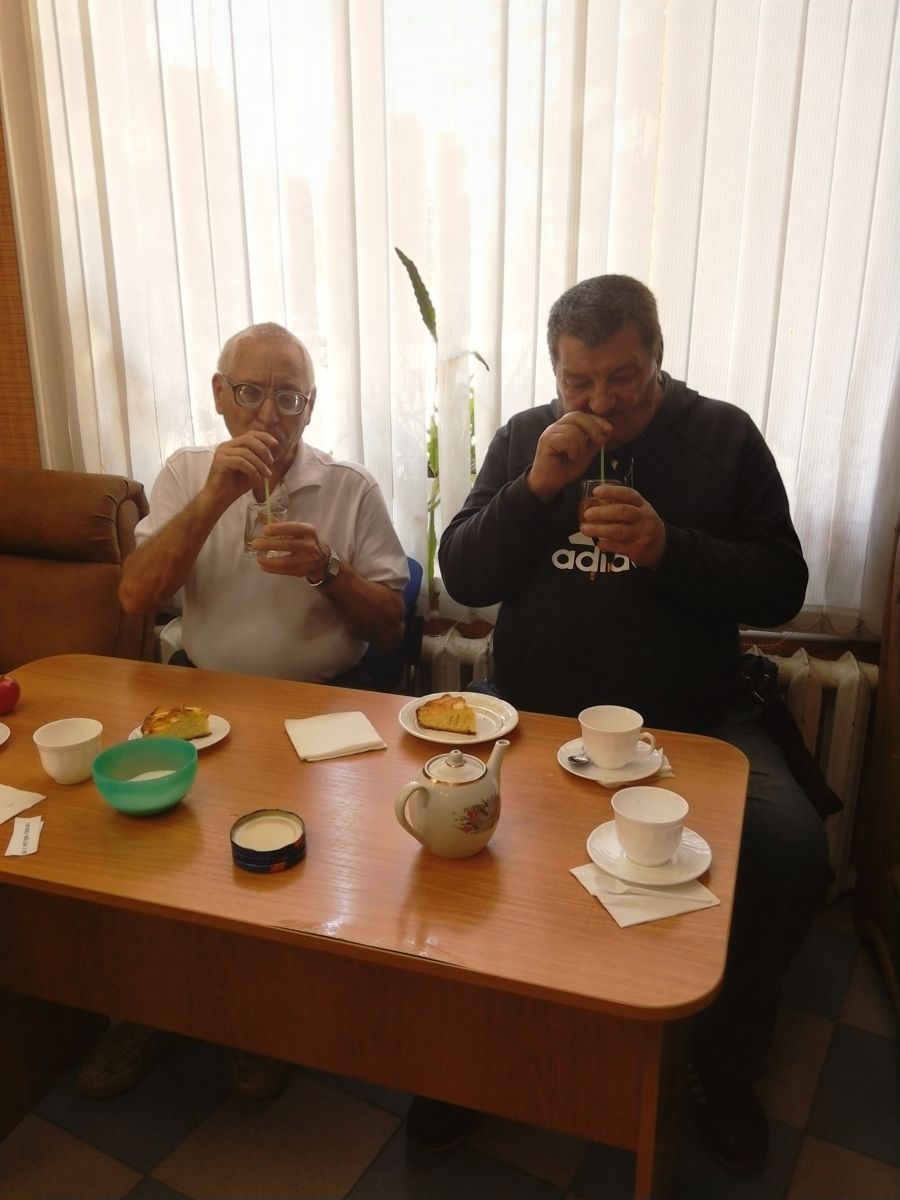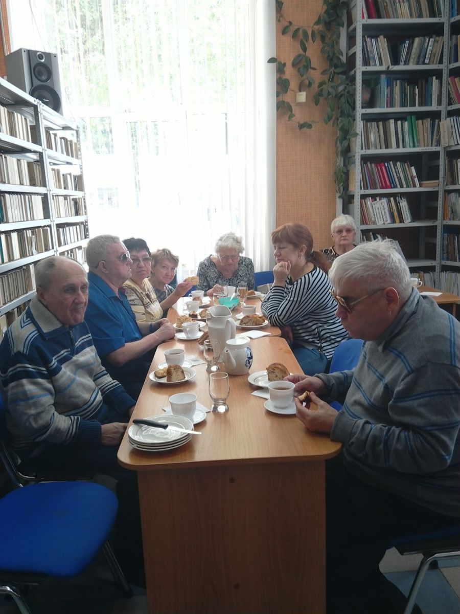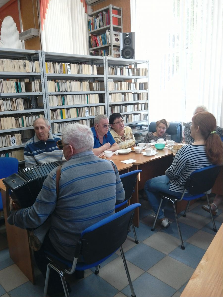 Читателей угощали чаем с яблочными пирогами и яблочным соком, приготовленными сотрудниками. В заключении все вместе пели песни и частушки под баян.
