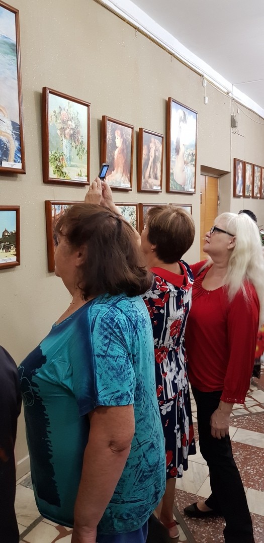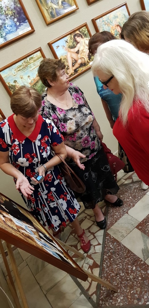 Люди с ослабленным зрением с большим интересом рассматривали картины, а те, кто не имел возможности видеть глазами, ознакомился с творчеством художника через очень интересный рассказ специалиста музея.