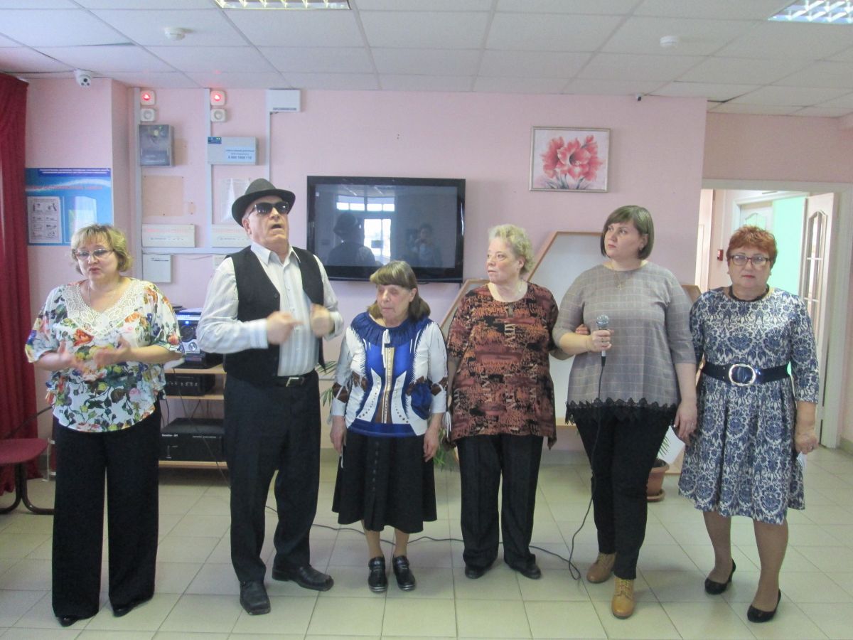 Коллектив творческой студии «Горячие сердца» при библиотеке украсил встречу друзей своим выступлением. Владимир Алексеев прочитал стихотворение «Необычайное приключение, бывшее с Владимиром Маяковским летом на даче» поэта, драматурга, киносценариста, кинорежиссёра, киноактёра, художника, редактора журналов Владимира Маяковского (125-летний юбилей в 2018 году) и стихотворение поэта, фронтовика, Героя Советского Союза Эдуарда Асадова «Ты прекрасная, нежная женщина» (95-летний юбилей в 2018 году). Стихи прозвучали под красивую классическую музыку. Русские и эстрадные песни, которые никого не оставили равнодушными, исполнили Людмила Баранова, Елена Кустова, Любовь Спиридонова, Николай Егоров. Музыкальный конкурс «Песня слышится и не слышится» доставил всем удовольствие вспомнить по первой строчке любимые песни и спеть их.