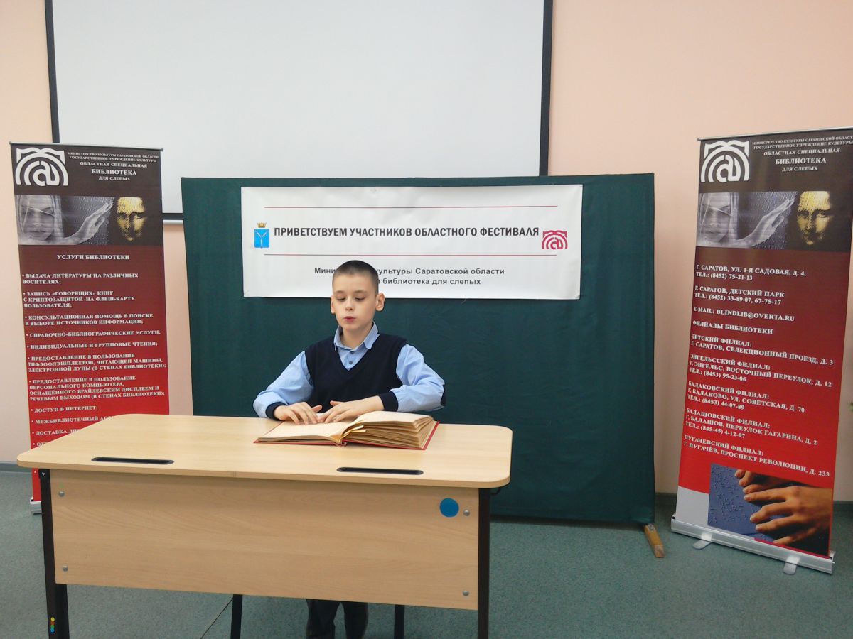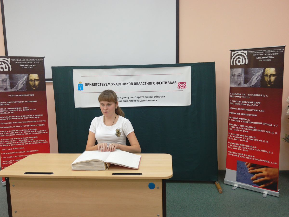 Областной фестиваль «Читаем вместе» проводится Министерством культуры Саратовской области и ГУК «Областная специальная библиотека для слепых». Фестиваль проводится в целях реализации современной просветительской деятельности библиотек, мотивации людей с нарушениями зрения к чтению литературы.