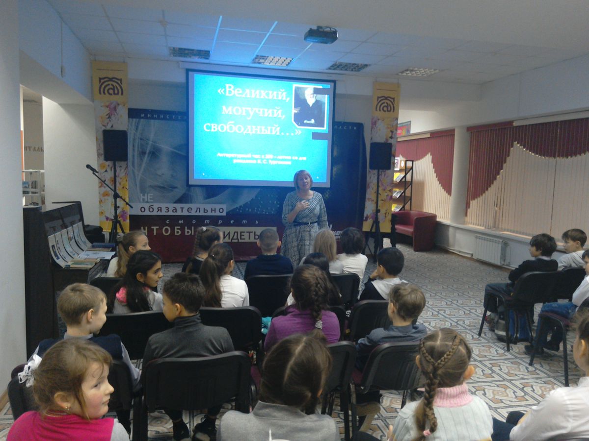 В ГУК "Областная специальная библиотека для слепых" продолжается цикл мероприятий, посвященных 200-летию Ивана Сергеевича Тургенева. 8 ноября 2018 года прошел литературный час "Певец русской природы" для учащихся 4-х классов МОУ СОШ № 2 УИП им. В.П. Тихонова.