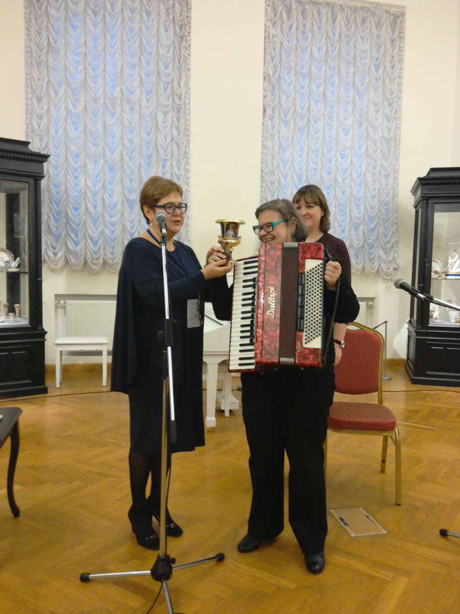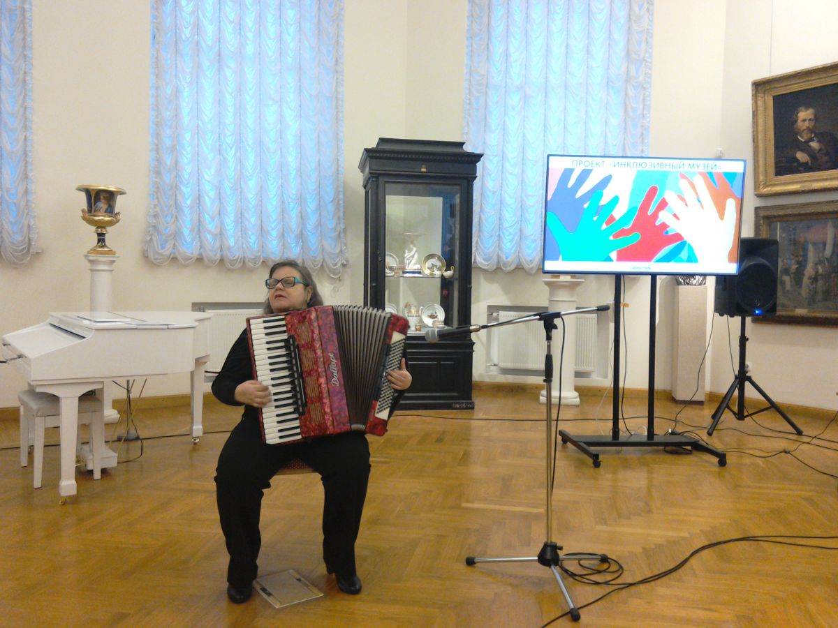 Читательница библиотеки Елена Вожегова представила концертную программу «Музыкальная палитра». Елена – обладательница титула «Гражданин мира», почётный член ООН, лауреат международной премии «Филантроп», талантливый музыкант и просто хороший человек. Музыка для Елены стала связующим звеном между ее внутренним миром и реальным. Однажды в детском клубе в Венгрии, где служил её отец, она услышала аккордеон. Этот инструмент настолько поразил слух девочки, что она захотела непременно научиться на нем играть. И её мечта сбылась.