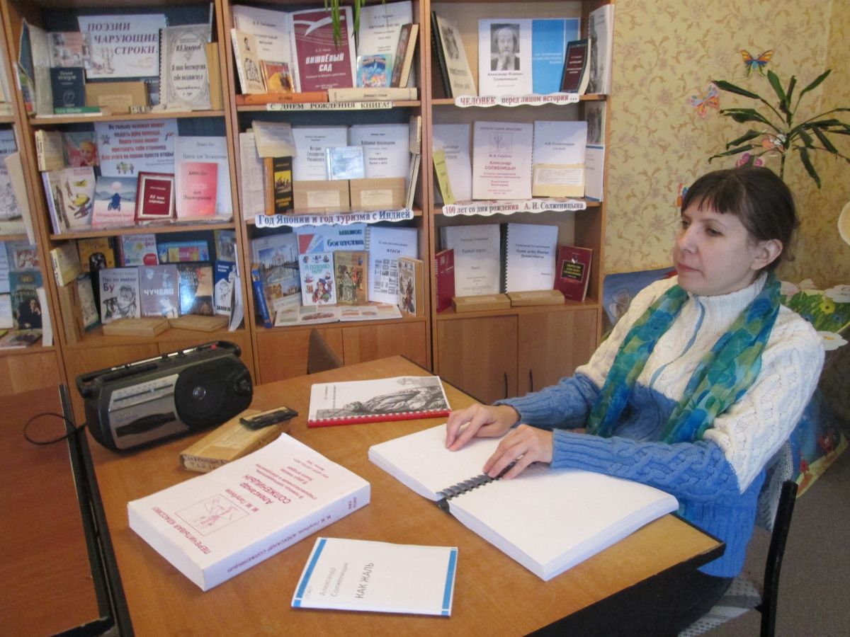 Неделя творчества известного писателя и поэта, историка и публициста, общественного и политического деятеля, члена Российской Академии наук и лауреата Нобелевской премии по литературе А. И. Солженицына в Балаковском филиале ГУК «Областная специальная библиотека для слепых» была посвящена его 100-летнему юбилею.