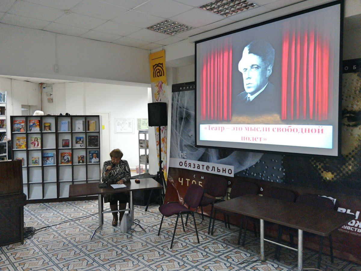 Ведущая мероприятия Т.Т. Немцова познакомила читателей библиотеки с биографией знаменитого режиссёра, рассказала о его творческом пути, о знаменитых произведениях, поставленных им на театральных подмостках.