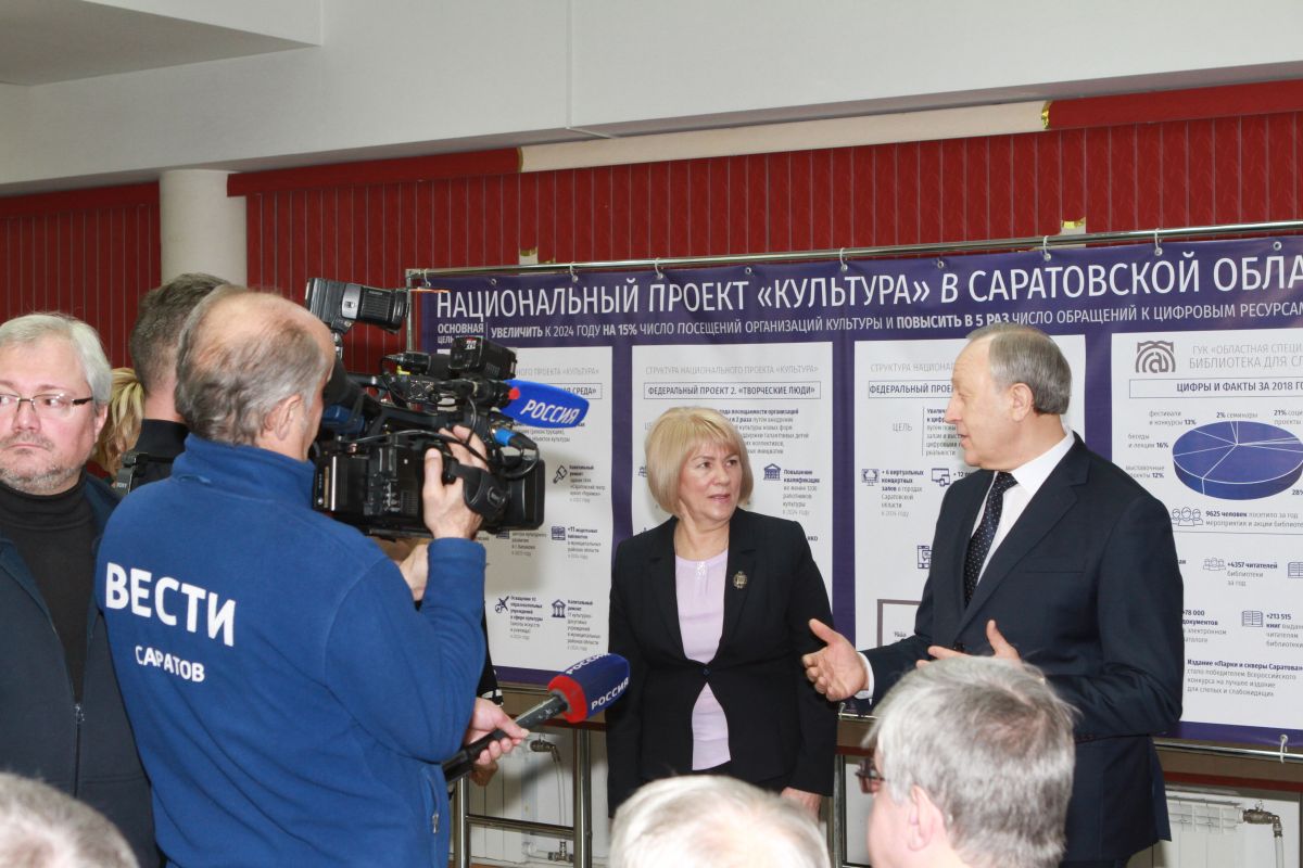 Библиотеку возглавляет опытный специалист – заслуженный работник культуры РФ Ольга Новикова, чей стаж работы составляет 43 года. Она рассказала главе региона, что библиотека является единственным в регионе специализированным учреждением для людей с плохим зрением, её посещают более 4,3 тыс. человек – взрослые и дети, а также работники реабилитационных учреждений. Филиалы библиотеки имеются в других крупных городах области. Средняя дневная посещаемость Областной специальной библиотеки для слепых вместе с 5 структурными подразделениями, библиотеками-филиалами г. Балаково, Балашов, Пугачев, Энгельс и Детский филиал г. Саратова составляет 171 человек.