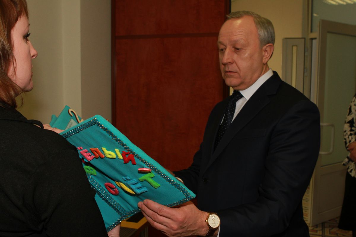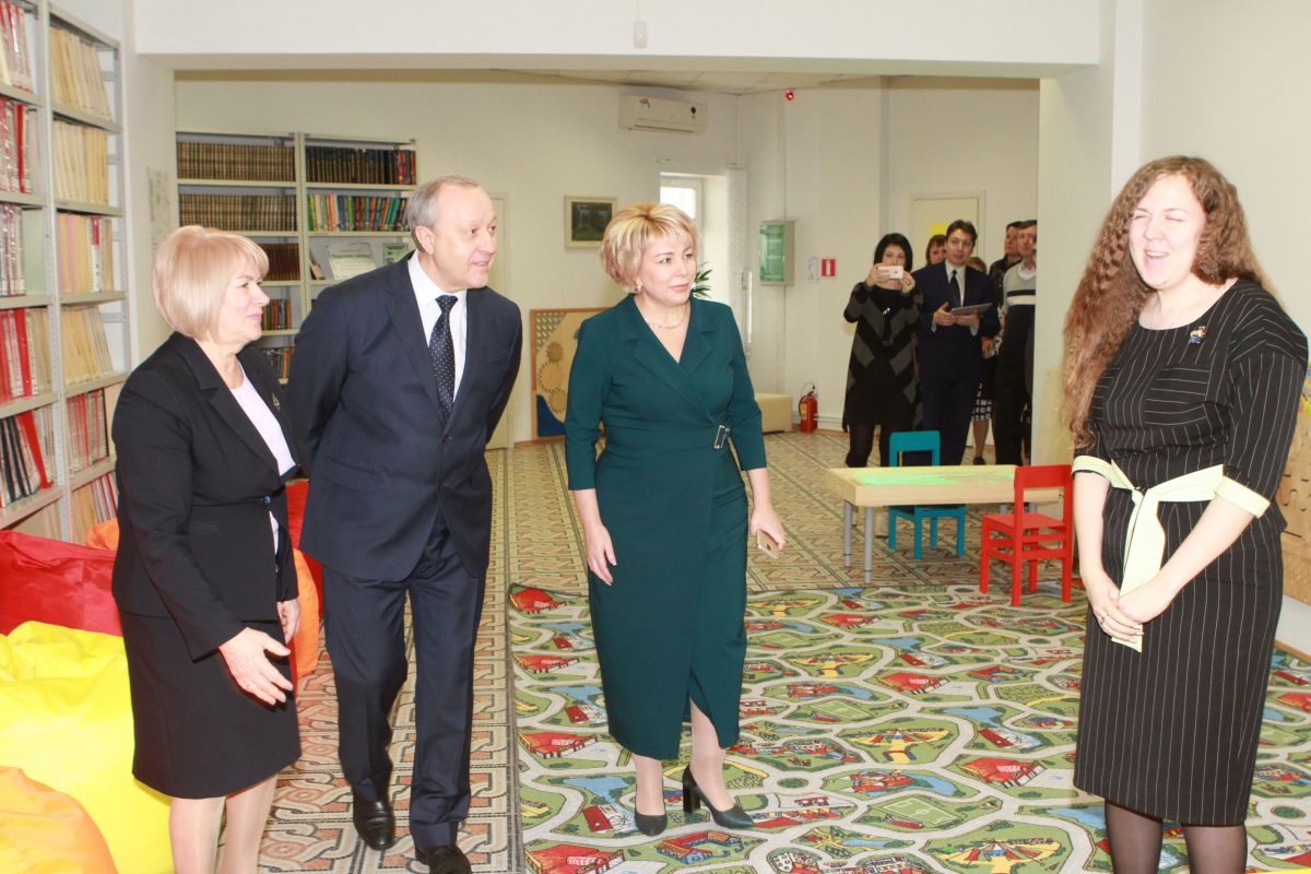 Глава региона посетил детский центр, где занимаются дети от 3 до 7 лет. Центр оборудован развивающими игрушками, тактильными рукодельными книгами и современными электронными изданиями. Валерий Радаев также осмотрел читальный зал, выставку тактильных картин, центр правовой информации, рабочее место для слабовидящих пользователей компьютера.