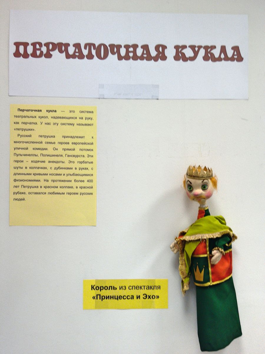 На выставке представлена перчаточная кукла Короля из спектакля «Принцесса и Эхо».
