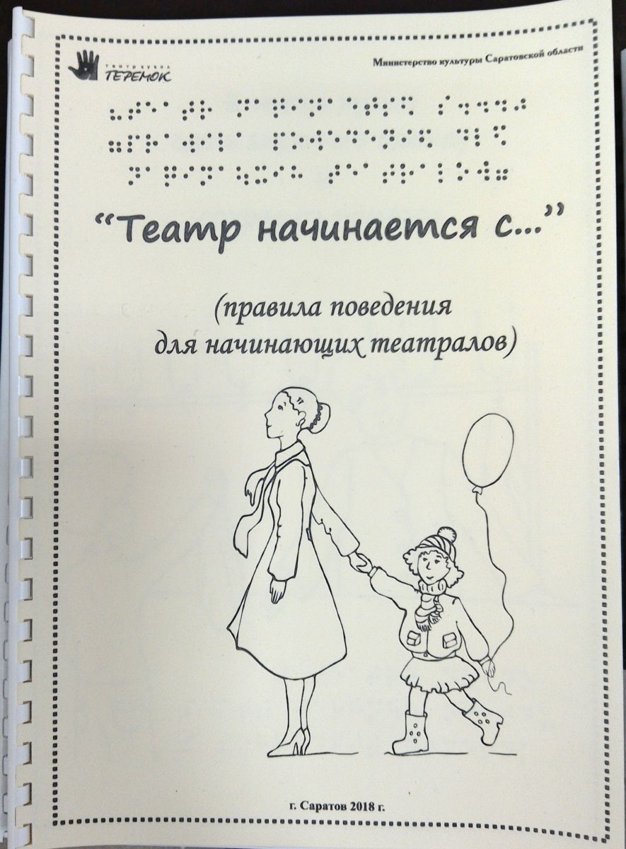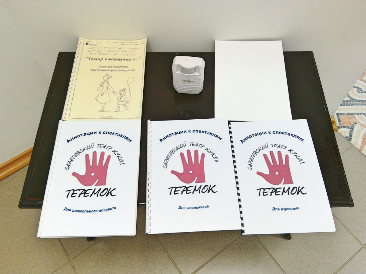 На выставке представлены материалы о театре на специальных носителях: аннотации к спектаклям Саратовского театра кукол «Теремок», правила поведения для начинающих театралов.